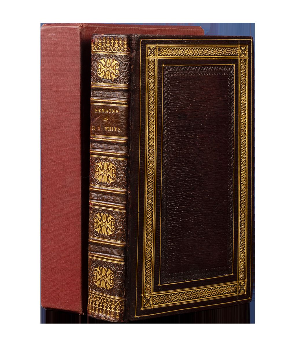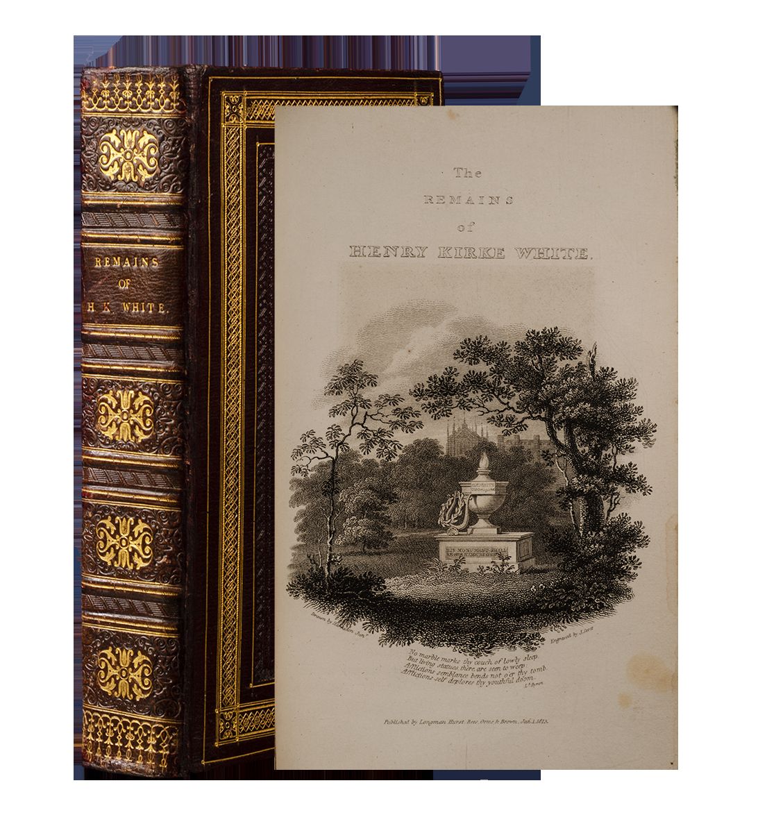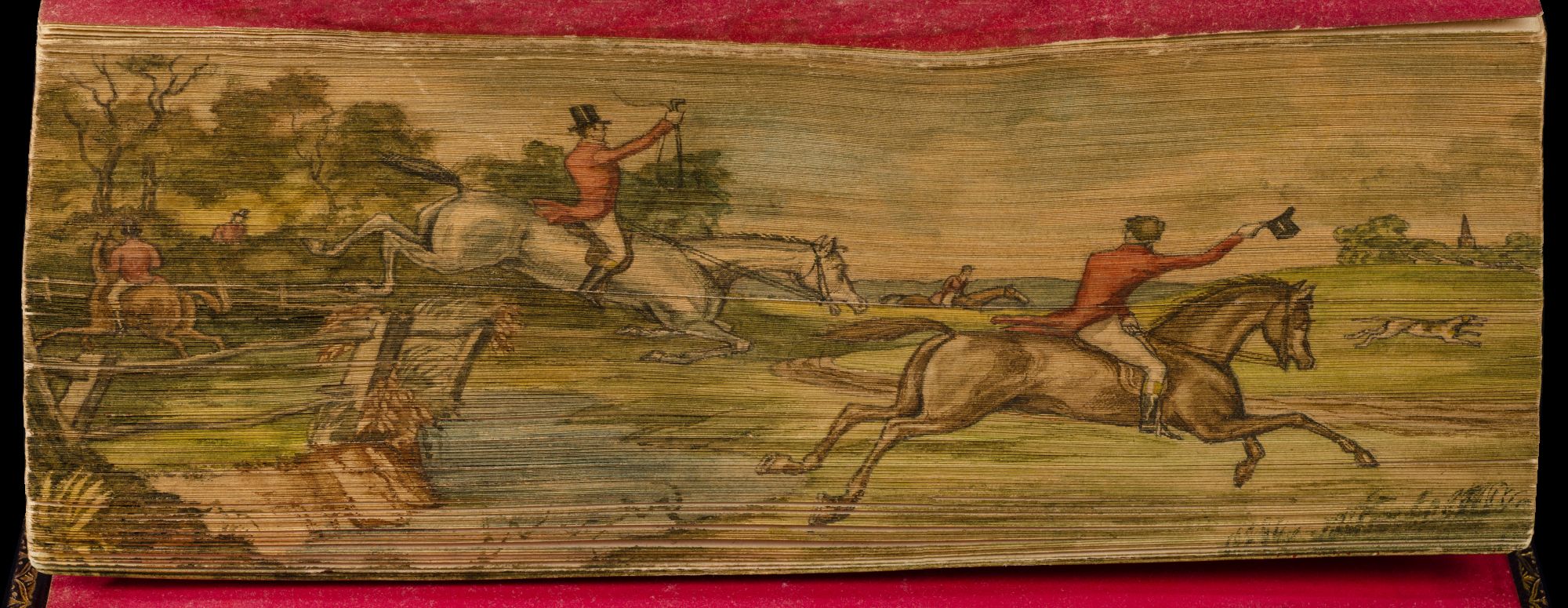 London: Longman, Hurst, Rees, Orme, and Brown, 1816. Seventh edition. Two volumes bound in one. Octavo (8 3/8 x 5 1/4 inches; 214 x 133 mm.). [i]-viii, [1]-376; [i]-viii, [1]-316 pp. Volume one with an engraved portrait frontispiece and additional vignette title; Volume two with an engraved view of the islet which he had often forded when the river was not knee-deep. Some offsetting from plates to title-pages. With a fine fore-edge painting (ca. 1935) by Lyman Young depicting a typical English county fox-hunting scene with hounds and riders. The fore-edge is signed by Lyman Young on the final free-endpaper. Full contemporary maroon straight-grain morocco, covers decoratively bordered in gilt, spine with four shallow raised bands, decoratively tooled and lettered in gilt, gilt decorated turn-ins, red paper endleaves. Minor repairs to the outer joints, near the crown. Housed in a later red cloth slipcase.