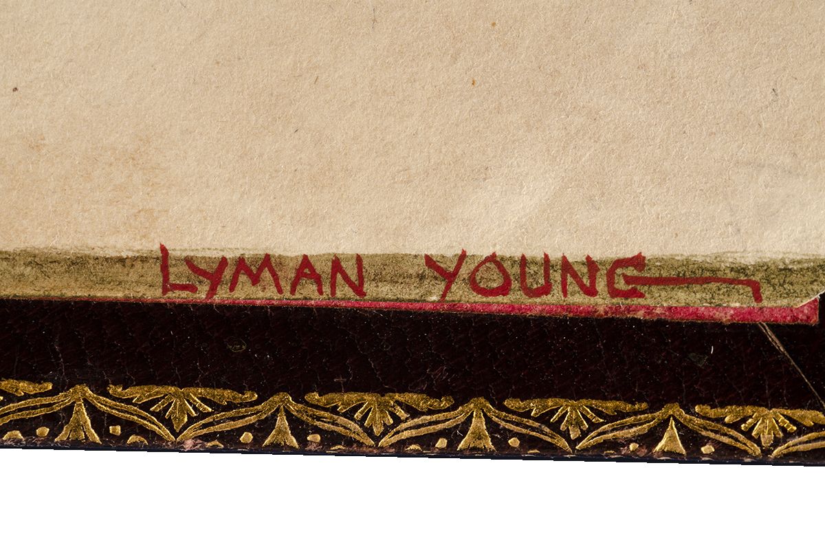 Lyman Young (1893-1984) was an American cartoonist, trained at the Chicago Art Institute and based on California, famous for his comic strip “Tim Tyler’s Luck.” According to Weber, “Young knew Col. Don L. Wells who commissioned him to make fore-edge paintings, possibly during the mid-1930s in Los Angeles, CA. Young apparently did not supply title-labels, but he did sign the books, typically on the rear free endleaf, facing the fore-edge. In 1940 he demonstrated painting on a fore-edge as part of the "Art in Action" project at the Golden Gate International Exposition, Palace of Fine Arts..." (Annotated Dictionary of Fore-Edge Painting). There are eight examples of Lyman Young's Fore-Edge Painting in Weber's Annotated Dictionary including the present, which is pictured in color and described thusly "… the artist offered a scene of fox hunting with the hounds and riders. Young wrote his name as per his usual style, on the back inside leaf along the recto's edge, using red colored paint: his name in capital letters…" (Annotated Dictionary of Fore-Edge Painting). A rare example of Lyman Young's work.