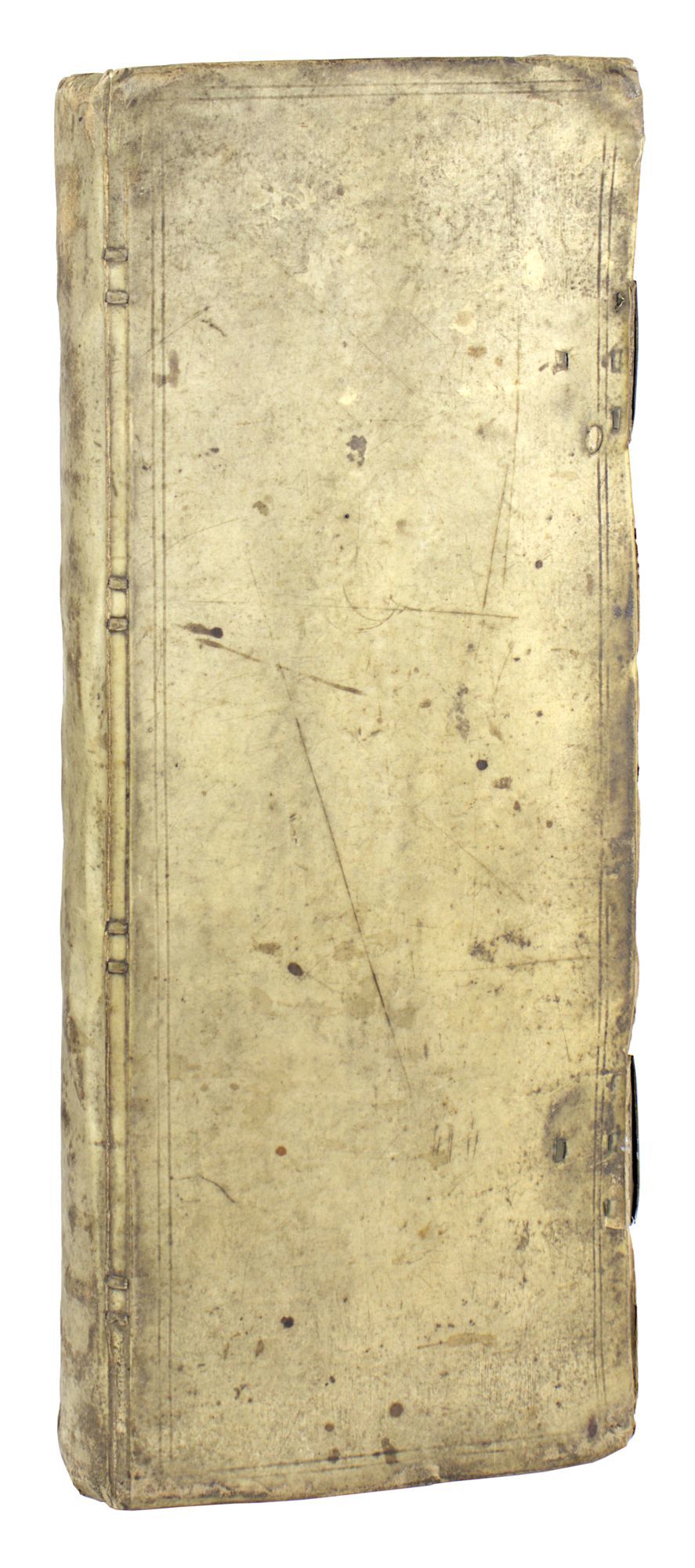 London, 1740. Very Good. London? 1740-1749. Tall, narrow folio (40.5x16.5cm.); full parchment retaining original brass clasps; [2],169,[2]ll. filled to completion with manuscript accounts, text ruled in red throughout. Parchment unevenly browned and a bit scuffed at extremities, a number of surface scratches, some cracking at head of a few gatherings, occasional finger soil to textblock, else a Very Good, quite legible and attractive example.