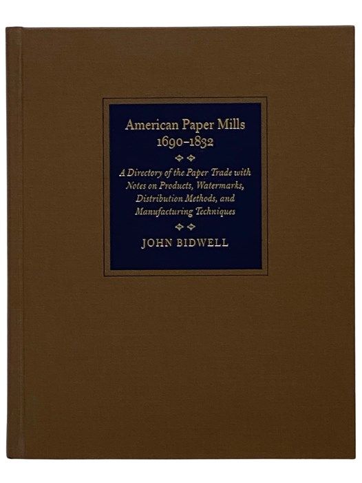 Hanover, New Hampshire / Worcester, Massachusetts: Dartmouth College Press / American Antiquarian Society, 2013. First Edition. Large Hardcover. Fine/No Jacket. 7x1x10. First edition. No jacket. An exceptional copy. 2013 Large Hardcover. lxxxvi, 340 pp. Black-and-white illustrations. Unprecedented in size and scope, this directory describes more than 500 paper mills on the basis of census records, archival sources, local histories, and watermark evidence. It traces economic developments and technological changes in the American paper trade from the colonial period to the industrial era, with special reference to its close connections with the printing business, which depended on local sources of supply for newsprint, book paper, and plate paper for engraved illustrations. Newly discovered and reattributed watermarks make it possible to identify these products and provide a more reliable means of dating and localizing works on paper. This fully documented survey of paper mills also contains biographical information about members of the trade and a succinct history of papermaking in America with essays on manufacturing methods, mechanization, business practices, and distribution networks. Among the illustrations in this volume are hitherto unrecorded woodcut and engraved views of manufactories, used in the packaging art of that period.