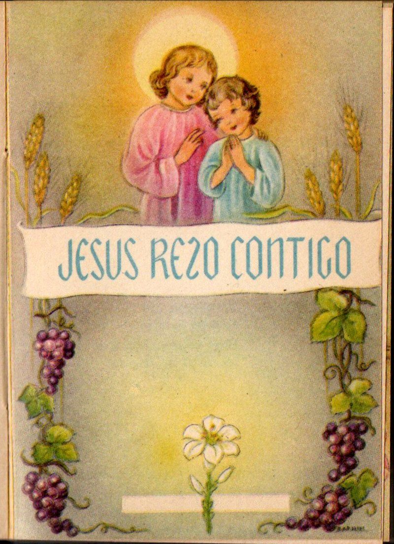 Mexico: Publicaciones Paulinas, S. A., 1961. Hard Cover. Very Good binding. Miniature [3 1/2 x 2 3/8"], in the publisers' blue cloth with the silhouette of a cherub in gilt to the upper board; 77 pages, followed by [1] Index, with about 22 colored plates; the text with headings printed in red.~~The prayers are: Por la Manana; Por la Noche; Durante el Dia; La Confesion; La Comunion; Depues de la Comunion, El Rosario, La Santa Misa, Votos Bautismaeles. Very Good binding.