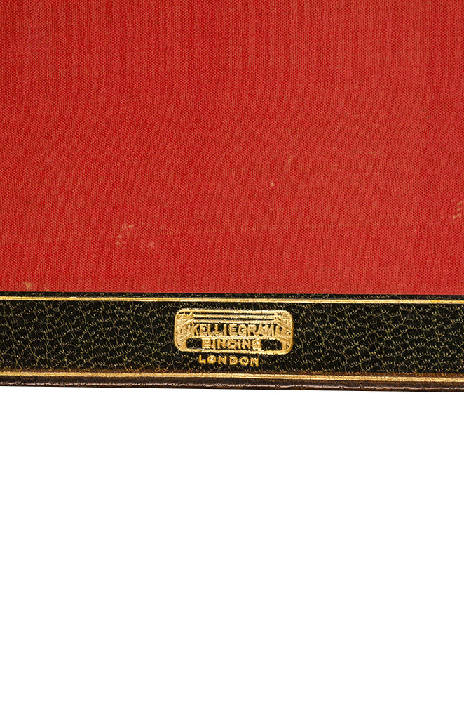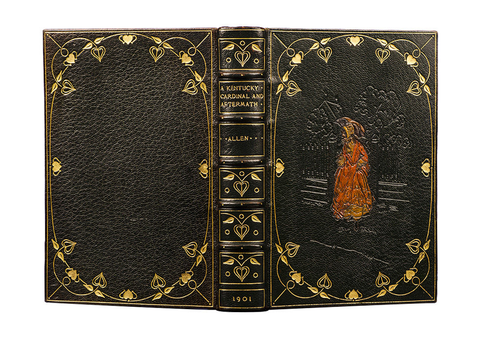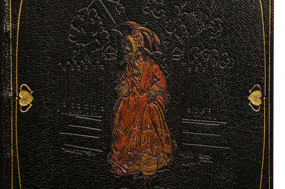 With its amazing whimsical design, this copy is a prime example of a Kelliegram binding. Known for their highly detailed pictorial inlaid color leather bindings, the London-based firm Kelly and Sons was one of the longest running in the trade. Started in 1770 by John Kellie, various family members continued the business into the early twentieth century. Charming, beautiful, and occasionally whimsical, the inlaid designs were often inspired by in-text illustrations.