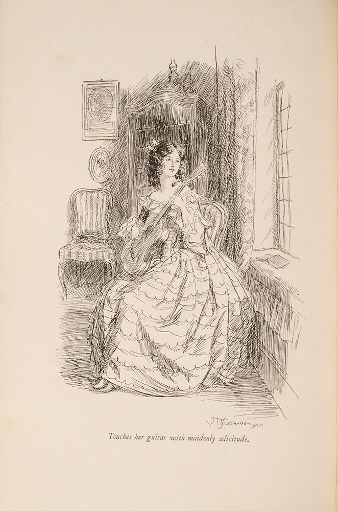 London: Macmillan, 1901. First edition, second impression. A nearly Fine second impression with Hugh Thomson illustrations (published one month after the first impression). Octavo (7 x 4 5/8 inches; 178 x 117 mm.). xxxii, 286 pp. Forty-eight full-page illustrations and numerous drawings within the text. Some occasional light foxing, otherwise fine. Bound by Kelliegram ca. 1901 (stamp-signed 'Kelliegram Binding London' in gilt on rear turn-in). Full dark green morocco… with a double gilt border enclosing a varicolored morocco pictorial onlay reproducing part of the Hugh Thomson illustration on page 40: "Certain ladies who bow sweetly to me." Spine with five raised bands, decoratively tooled in a floral design and lettered in gilt in compartments, gilt board edges and turn-ins, red silk liners and endleaves, all edges gilt.