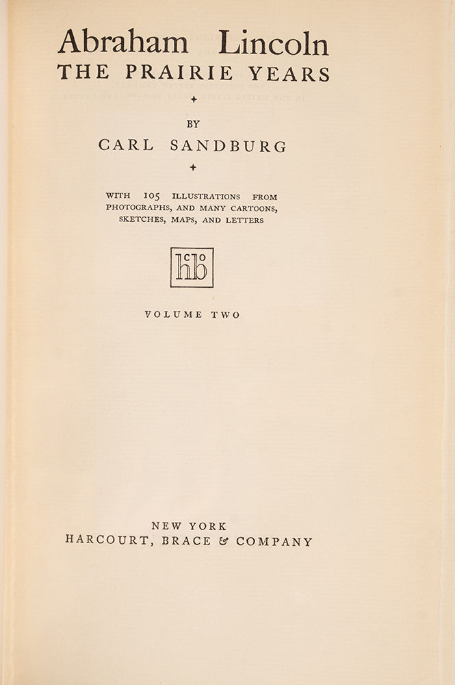 New York: Harcourt, Brace and Company, 1926. First edition. Near Fine. Number 22 of 260 copies, printed on Dutch Charcoal Rag Paper, numbered and signed "Carl Sandburg" by the author. Two octavo volumes (9 1/2 x 6 3/8 inches; 241 x 161 mm.). xvi, 480; vi, 482 pp. Bound in publishers cream buckram over blue boards, spines with printed paper labels, blue endpapers, top edge gilt, others uncut. Spines very slightly darkened otherwise a near fine, partially unopened set complete with the publishers duplicate labels at the end on each volume.