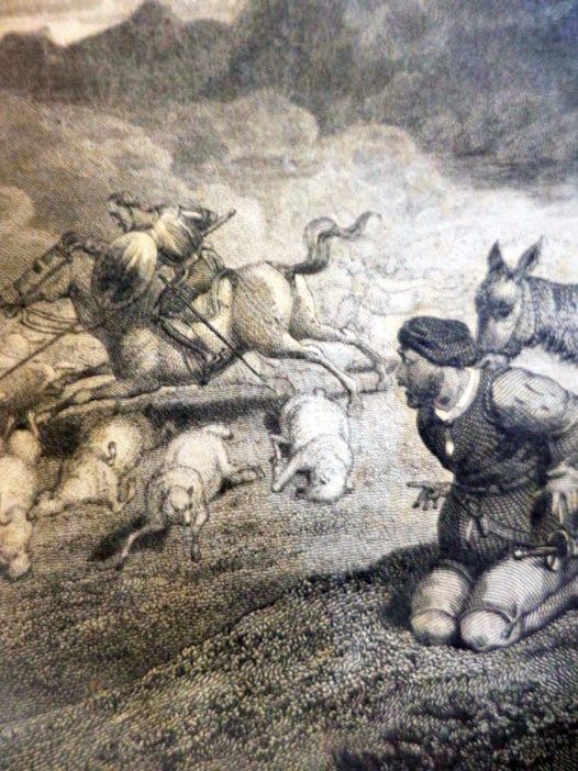 London: Hurst, Robinson, and Co., Cheapside, 1820. New Edition. Hard Cover. Good/No Jacket. 0x0x0. Westall, Robert. Rebound in plain blue cloth with gilt titles and rules, new endpapers. One gathering sprung in first volume, front and end matter, plates, and a few text pages foxed. A nice candidate for an elaborate new binding, though we have left this decision to the next owner (please inquire to discuss options for rebinding). 1820 Hard Cover. xx, 371; [iv], 388; [vi], 367; [vi], 436 pp. 16mo. Parts 1 and 2 complete in four volumes. This edition is notable for the engravings from designs by Robert Westall, R.A. Don Quixote (fully titled The Ingenious Hidalgo Don Quixote of La Mancha), is a novel written by Spanish author Miguel de Cervantes. Cervantes created a fictional origin for the story by inventing a Moorish chronicler for Don Quixote named Cide Hamete Benengeli. Published in two volumes a decade apart (in 1605 and 1615), Don Quixote is the most influential work of literature to emerge from the Spanish Golden Age and the entire Spanish literary canon. As a founding work of modern Western literature, it regularly appears high on lists of the greatest works of fiction ever published.