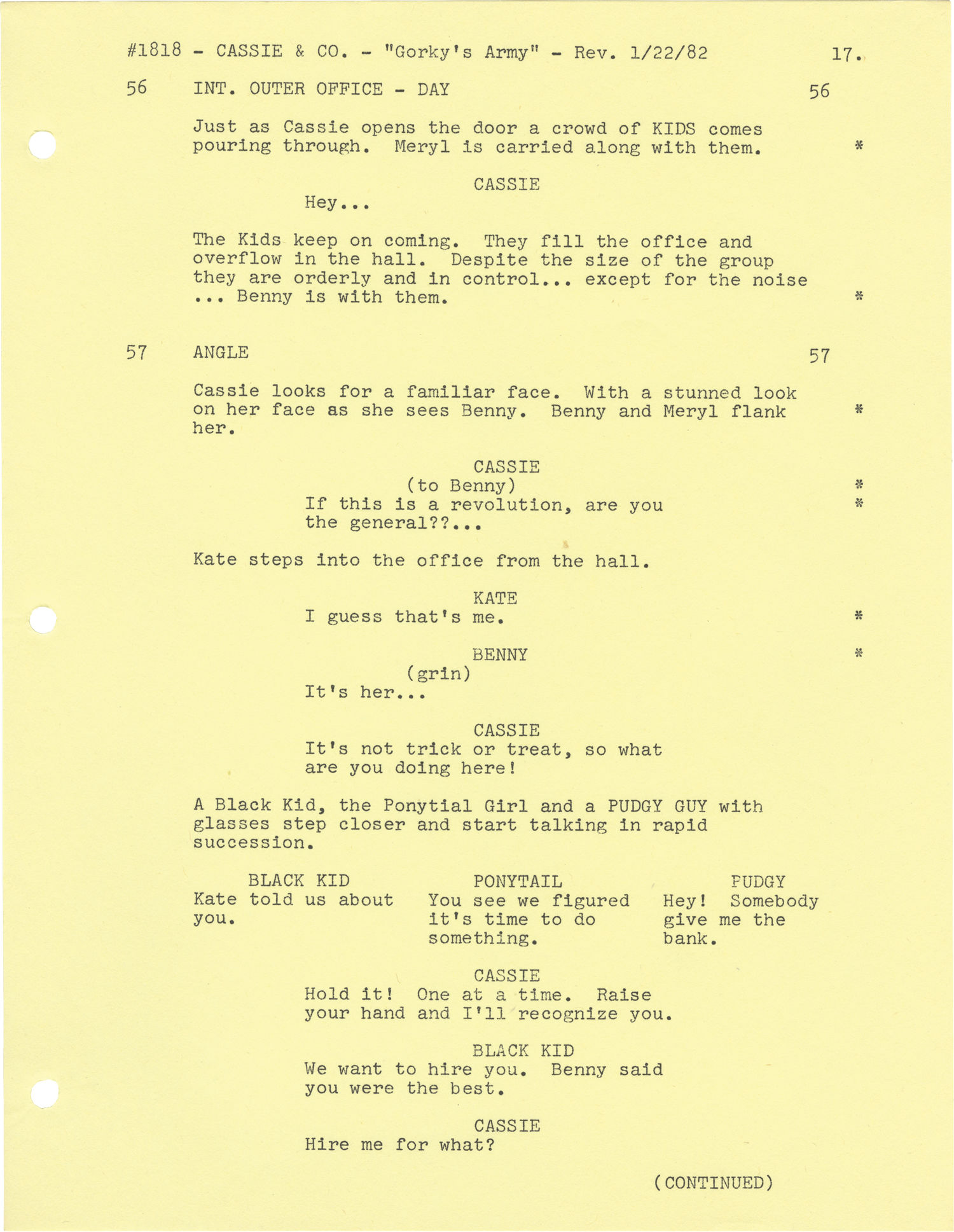 Cassie and Co.: Gorky's Army (Original screenplay for the 1982 television episode)