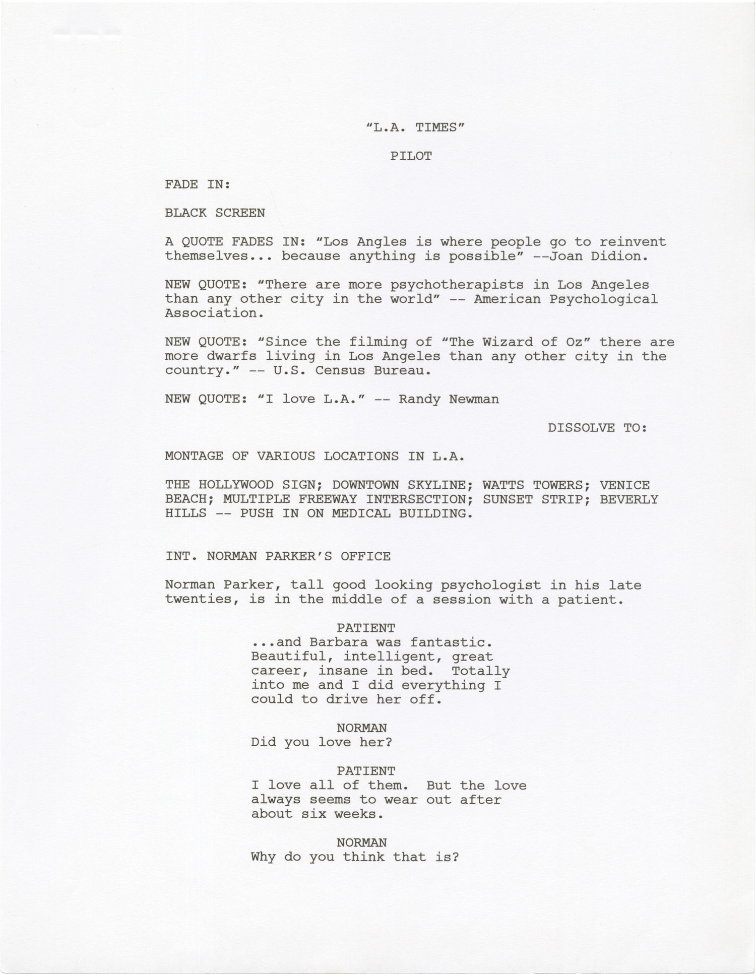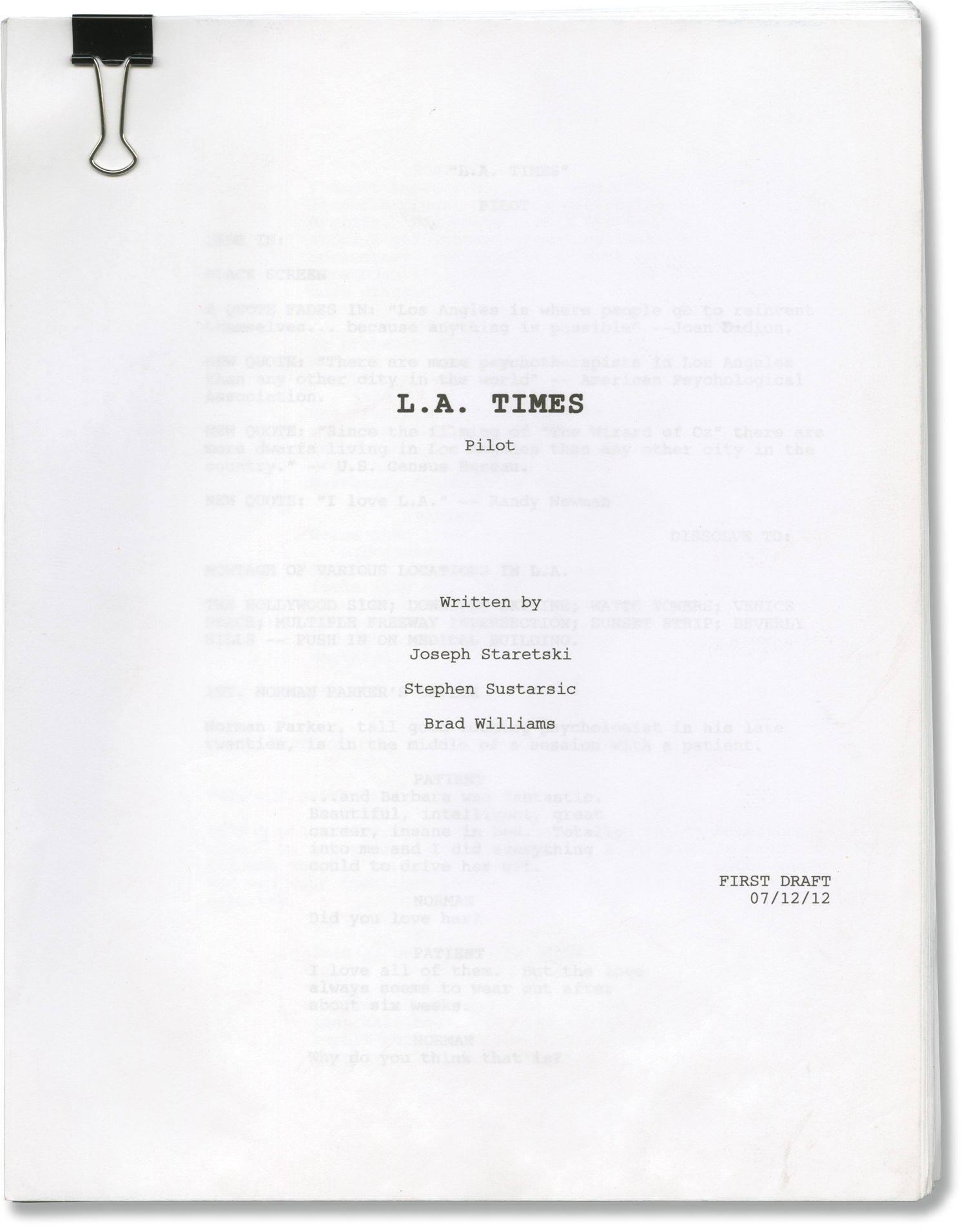 L.A. Times (Original screenplay for the pilot episode of an unproduced television series)