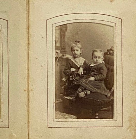 S.N. Hard Cover. Very Good/No Jacket. Spine faded, page edges lightly foxed. 5 1/4 x 4. A decorative antique photograph album with 24 CDV photos inserted. Original patterned cloth with embossed designs, color cameo portrait inset on front board.