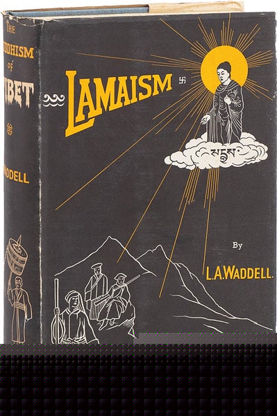 Cambridge: W. Heffer & Sons, 1958. Second Edition Stated. 8vo. 21.5cm x 15cm. Publisher's pale blue cloth. Dustjacket. Titled and decorated in dark green to spine and front board, strong and clean, in a dustjacket with some light, minor wear to the extremities and some soiling to the white rear panel. A very good, handsome copy. 598pp. Internally clean. A very attractive and faithful reprinting from the original publishers of the 1895 edition. One of the first, and least ridiculous, Western works on Buddhism and the Lamas of Tibet, perhaps down to the fact that Waddell spent an appreciable time in Tibet, studying the complexities of Buddhism.