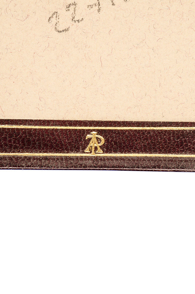 A very nice example of Alice Pattinson's fine work. Pattinson was a talented bookbinder active in the late-19th century. She trained with famous the binder Douglas Cockerell and alongside Katharine Adams and Florence Paget was involved with binding the Ashendene Press “Song of Songs” (1902). She ran a collaborative enterprise “all her later bindings were forwarded by her partner Else Hoffman, and finished by George Fisher, who at the time was one of the finest finishers in England. Fisher attended Douglas Cockerell’s evening classes at the Central School, and Cockerell introduced him to Pattinson just after he had finished his apprenticeship with Rivière’s. Pattinson made no secret of employing Fisher, although frequently her bindings were illustrated in catalogues and journals with no mention at all of who did the different parts of the work. Her bindings are signed with the monogram of her initials, similar to that of Annie Power, and are usually dated” (Tidcombe). Fine.