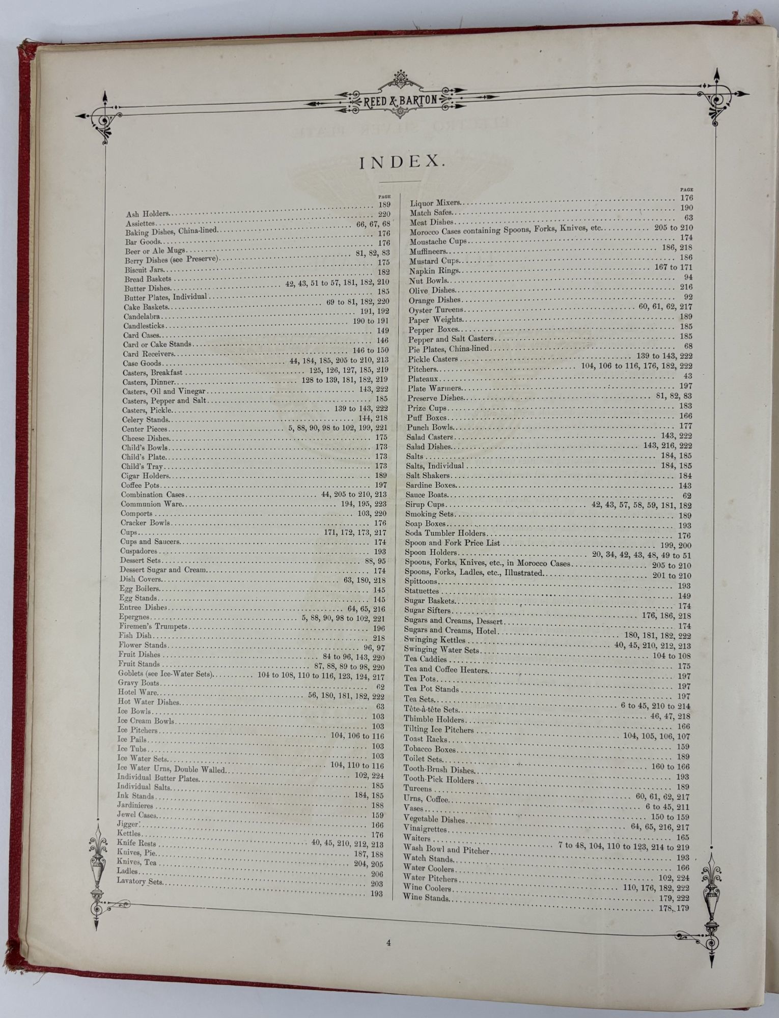 ILLUSTRATED CATALOGUE AND PRICE LIST OF ELECTRO SILVER PLATE MANUFACTURED BY REED & BARTON AND HEAVILY SILVER PLATED ON HARD WHITE METAL AND NICKEL SILVER