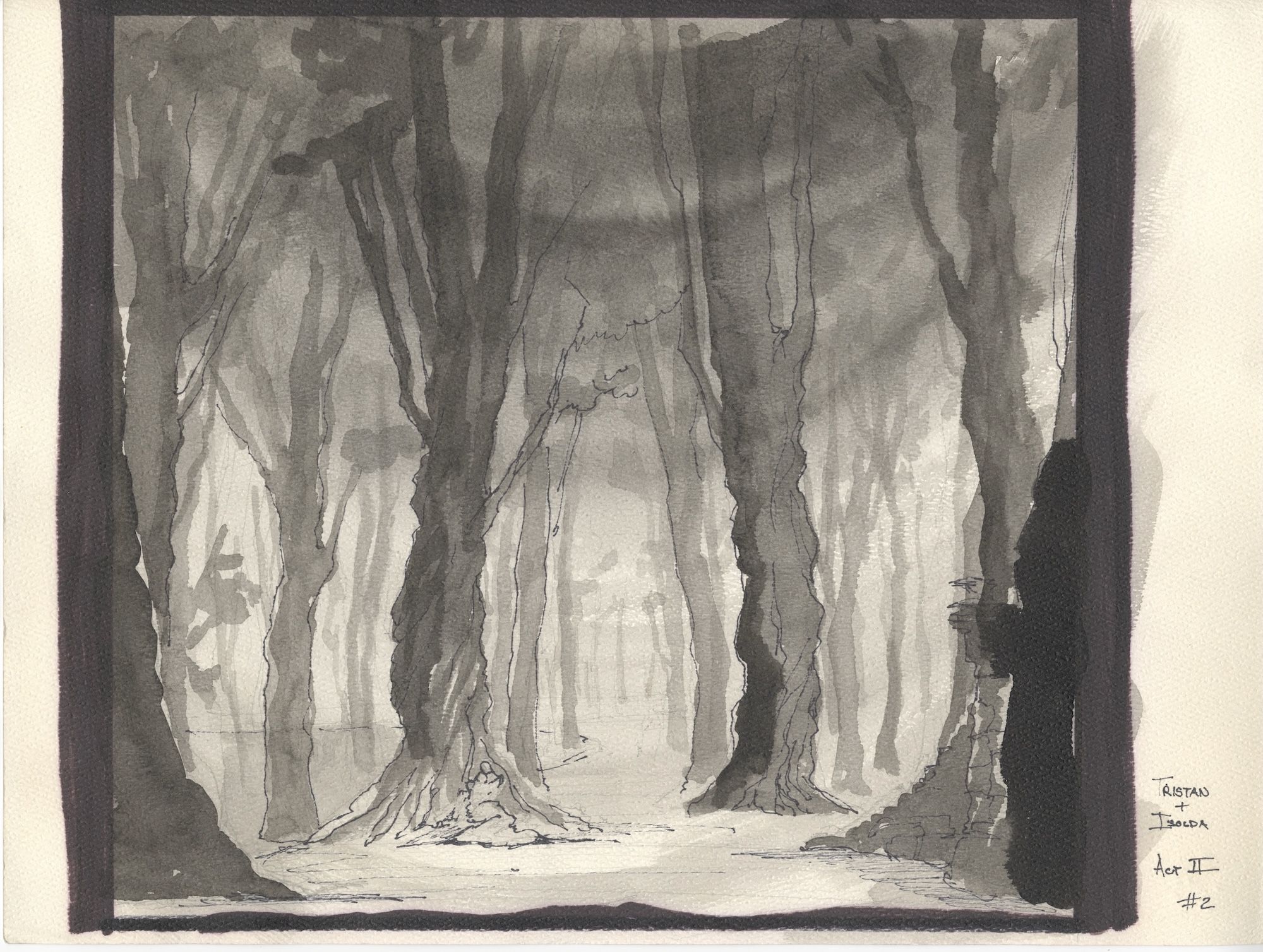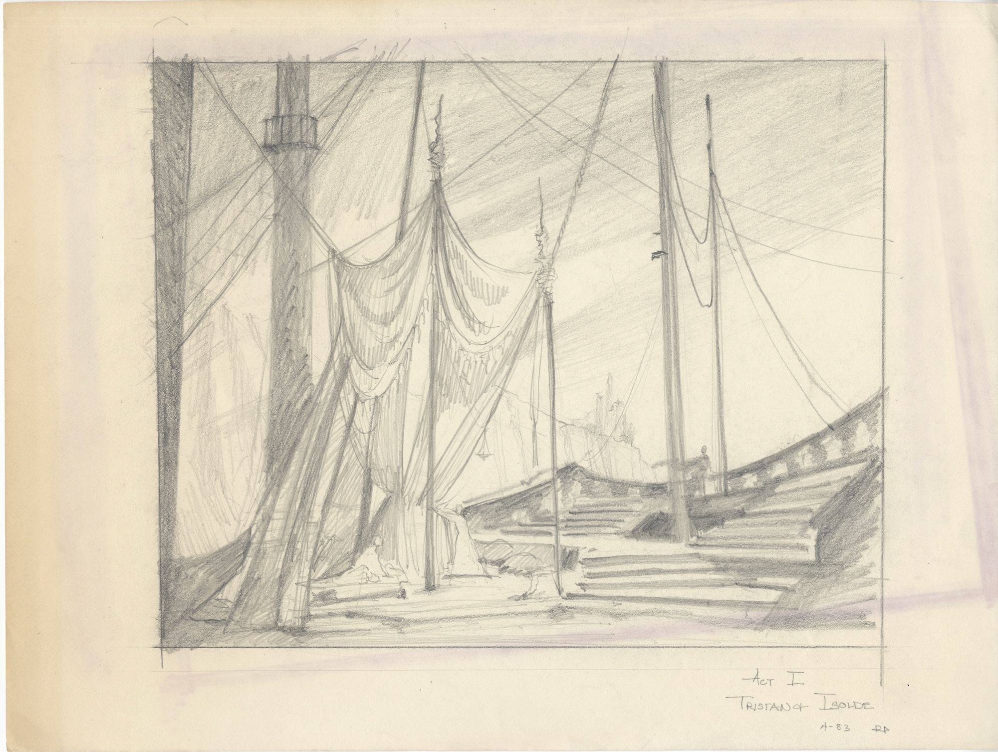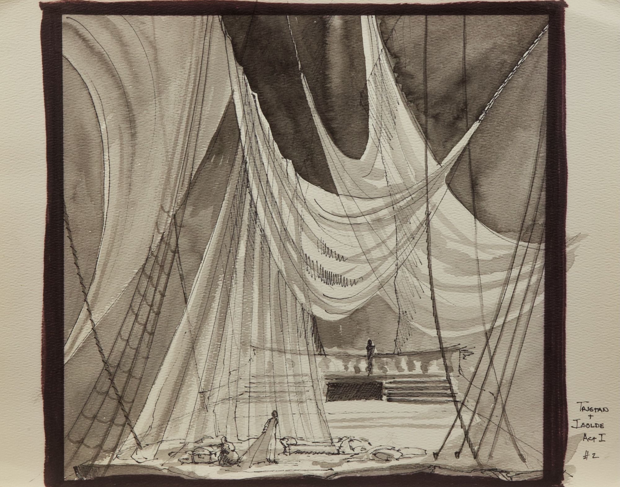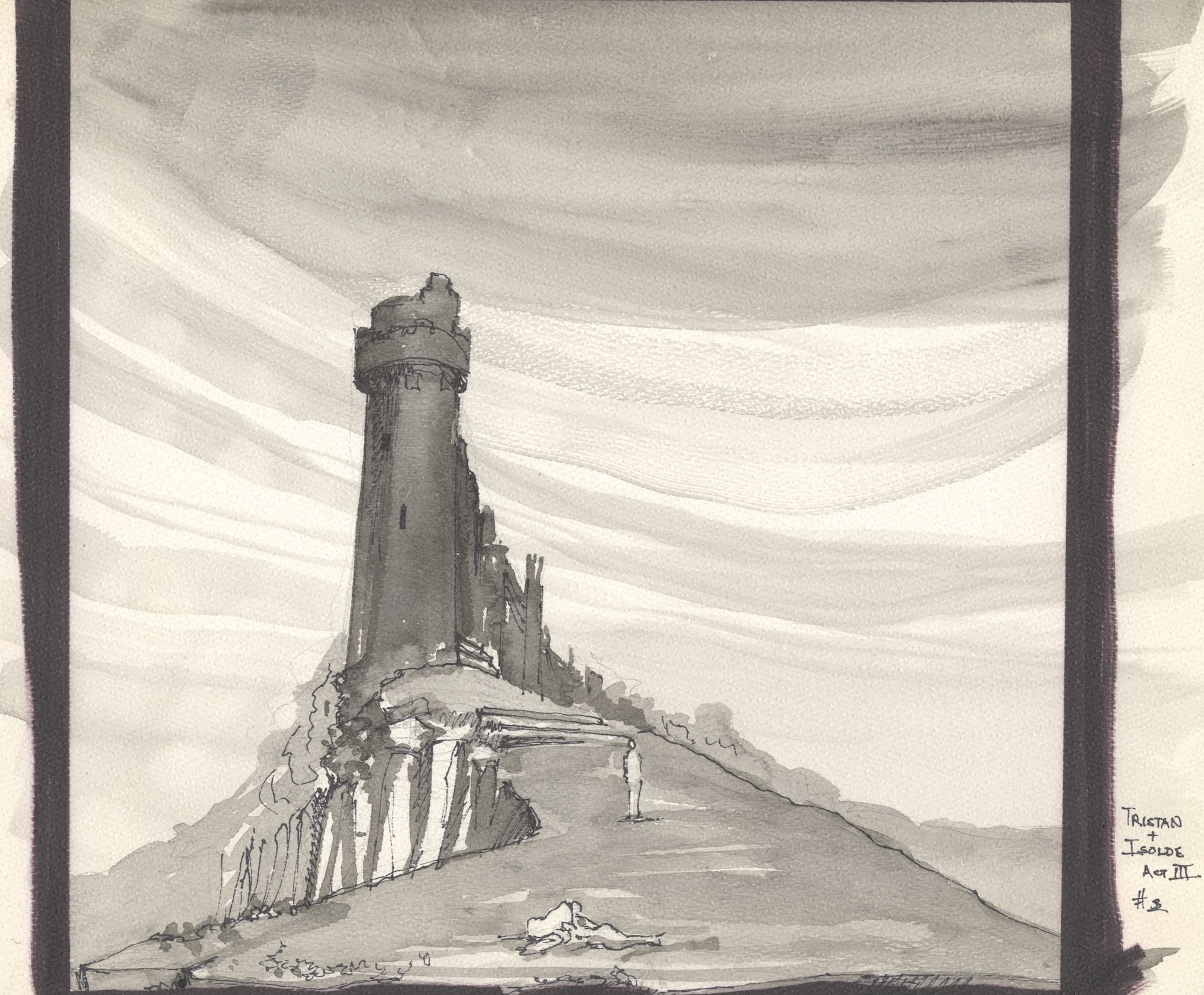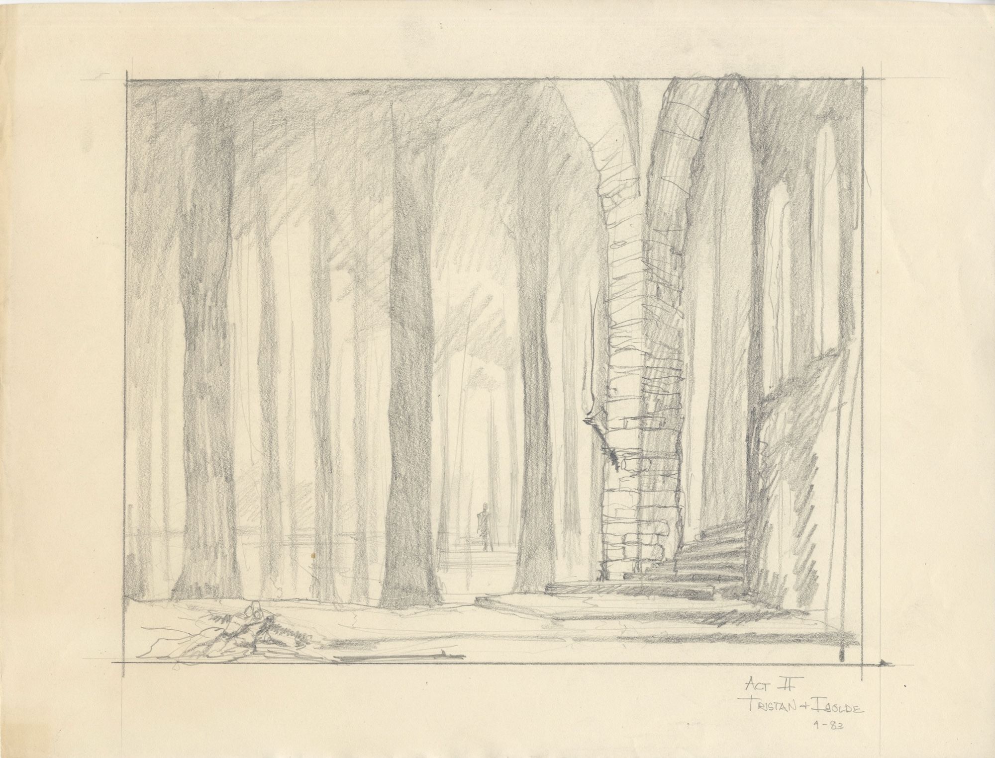 Tristan und Isolde, an opera. 6 original set designs by the noted American artist Robert Perdziola (born 1961), two dated April 1983m one signed with the artist's initials, the others unsigned