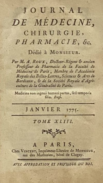 Journal De Medecine, Chirurgie, Pharmacie, &c., Janvier-Juin, 1775, Tome XLIII [FRENCH TEXT]