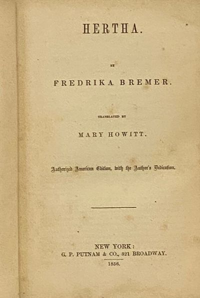 New York: G.P. Putnam & Co, 1856. First American Edition. Hard Cover. Very Good/No Jacket. First American edition. Corners rubbed and exposed, owner bookplates (Harry Kent White, David F. White) and ink initials (D.F.W.) on prelims, front and end matter lightly foxed, light smudges on a few pages. 1856 Hard Cover. viii, [13]-383 pp. Dark brown cloth, gilt titles blind-stamped decorations on boards. Translated from the original Swedish by Mary Howitt. Considered the first Swedish feminist novel, Bremer's classic work was an instant sensation, and caused sweeping social change in Sweden upon its publication: the resulting reform movement granted all unmarried Swedish women legal majority at the age of 25 and established Hogre Lararinneseminariet, Sweden's first female tertiary school. Sophie Adlersparre responded to these changes by founding Tidskrift for hemmet (Home Review), Sweden's first women's magazine. The magazine's board also founded the first Swedish women's rights organization, which they named after Bremer. A scene in Louisa May Alcott's Little Women features the March sisters reading the works of Fredrika Bremer. The author is often called 'the Swedish Jane Austen,' and popularized the realist style in Swedish literature. Given her influence, this is a surprisingly scarce work both in the Swedish original and in English translation.