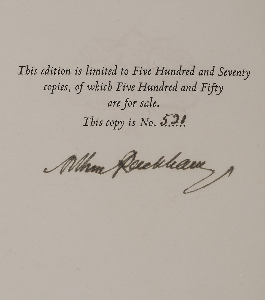 London: George Harrap & Co, 1932. Limited edition. Near Fine. Number 521 of 575 copies signed by Arthur Rackham. A Near Fine, partially uncut copy. Octavo (8 3/4 x 5 3/4 inches; 222 x 146 mm.). 47, [1] pp. Four color plates and fifteen drawings in black and white. Original limp vellum. Pictorial endpapers in green and white. Top edge gilt, others uncut. Housed in the original (slightly worn) slipcase with matching limitation number to spine.