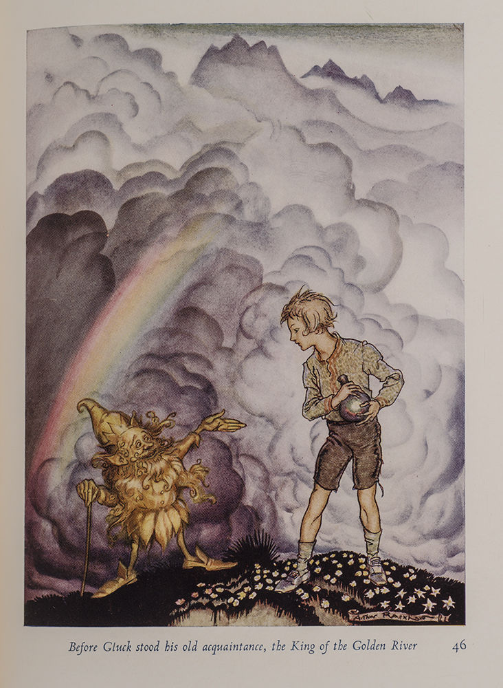 The King of the Golden River or The Black Brothers: A Legend of Stiria, is a children’s fantasy-adventure novel by the English critic John Ruskin (1819–1900). The parable follows Gluck, the youngest and kindest of three brothers, whose meeting with the magical King of the Golden River changes his life forever, while teaching the reader about generosity along the way. A departure from most of his literary output, the book was originally written for the twelve-year old Effie Gray, who Ruskin would later marry and who would eventually leave him for John Everett Millais. Ruskin would later praise “the value of the traditional tales, with their power ‘to fortify children against the glacial cold of selfish science’—a sentiment which lies at the heart of his own story” (The Oxford Companion to Fairy Tales).