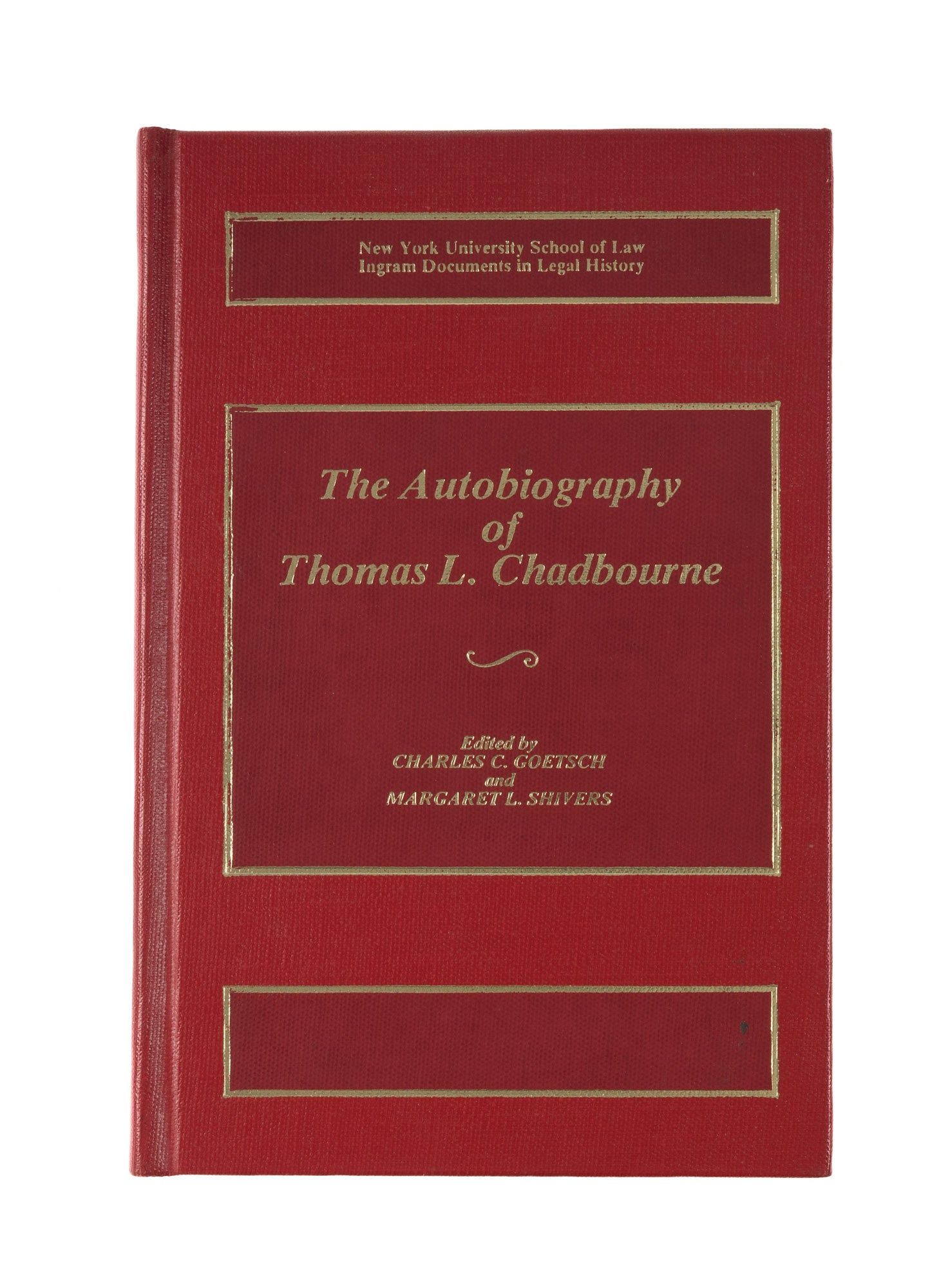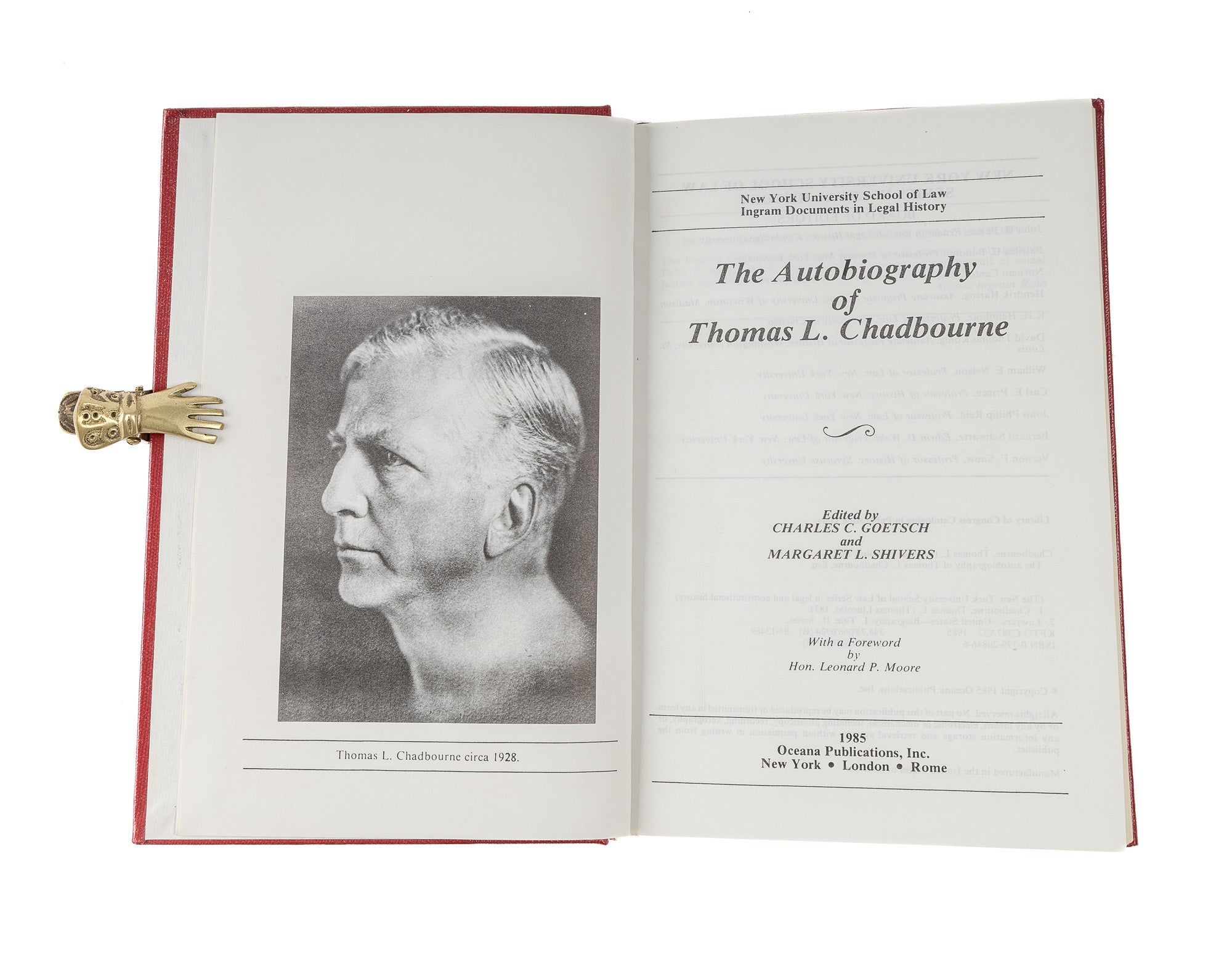 1985. Chadbourne, Thomas L. The Autobiography of Thomas L. Chadbourne. Edited by Charles C. Goetsch and Margaret L. Shivers. With a Foreword by Hon. Leonard P. Moore. Frontispiece. Illustrated. New York: Oceana Publications, Inc., 1985. xvii, 301 pp. Original red cloth, with gilt lettering spine and front cover. Near fine. $30.