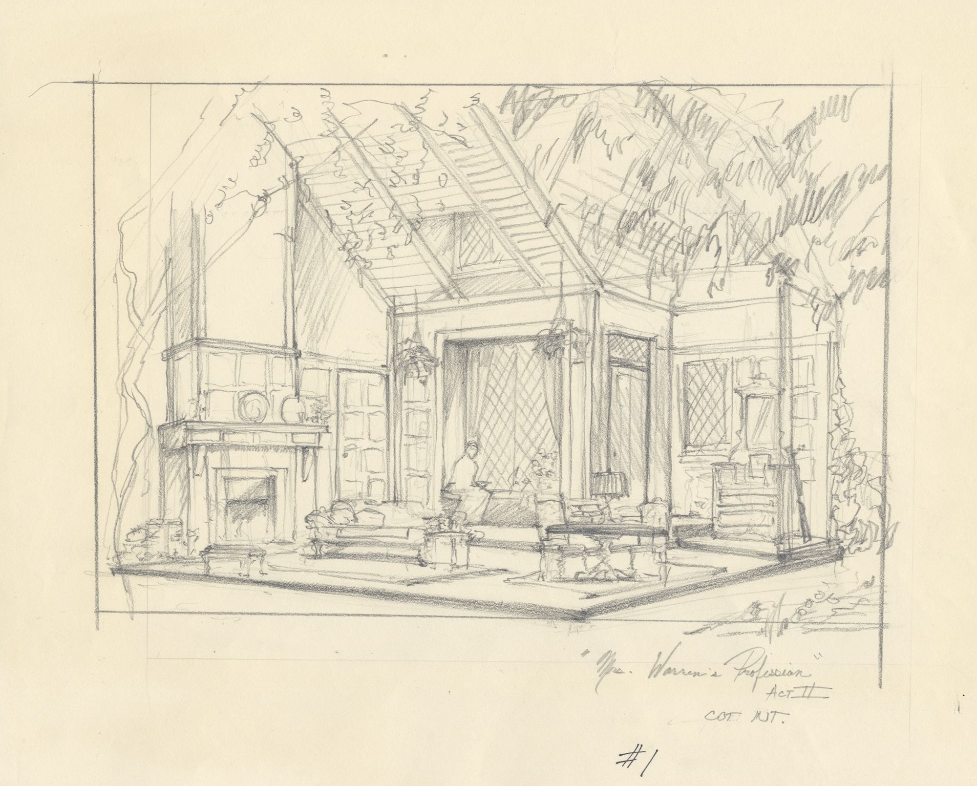 Mrs Warren's Profession. A Play in 4 acts. Six original set designs (5 in pen and ink and 1 in pencil) by noted American artist Robert Perdziola (born 1961). Undated, but ca. 2010