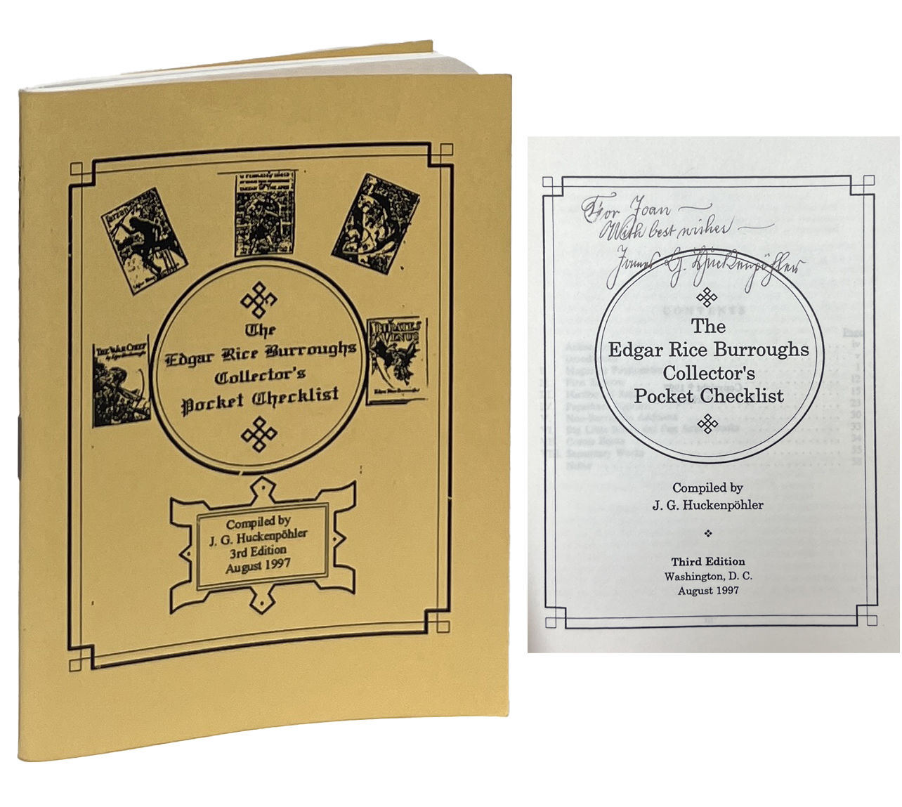Washington DC: J.G. Huckenpohler, 1997. Third Edition. Mass Market Paperback. Fine. Inscribed on the title page by Huckenpohler to ERB fan Joan Bledig. Fine. Clean wraps. Square and firmly bound with two staples, clean internally. From the collection of Joan Bledig.