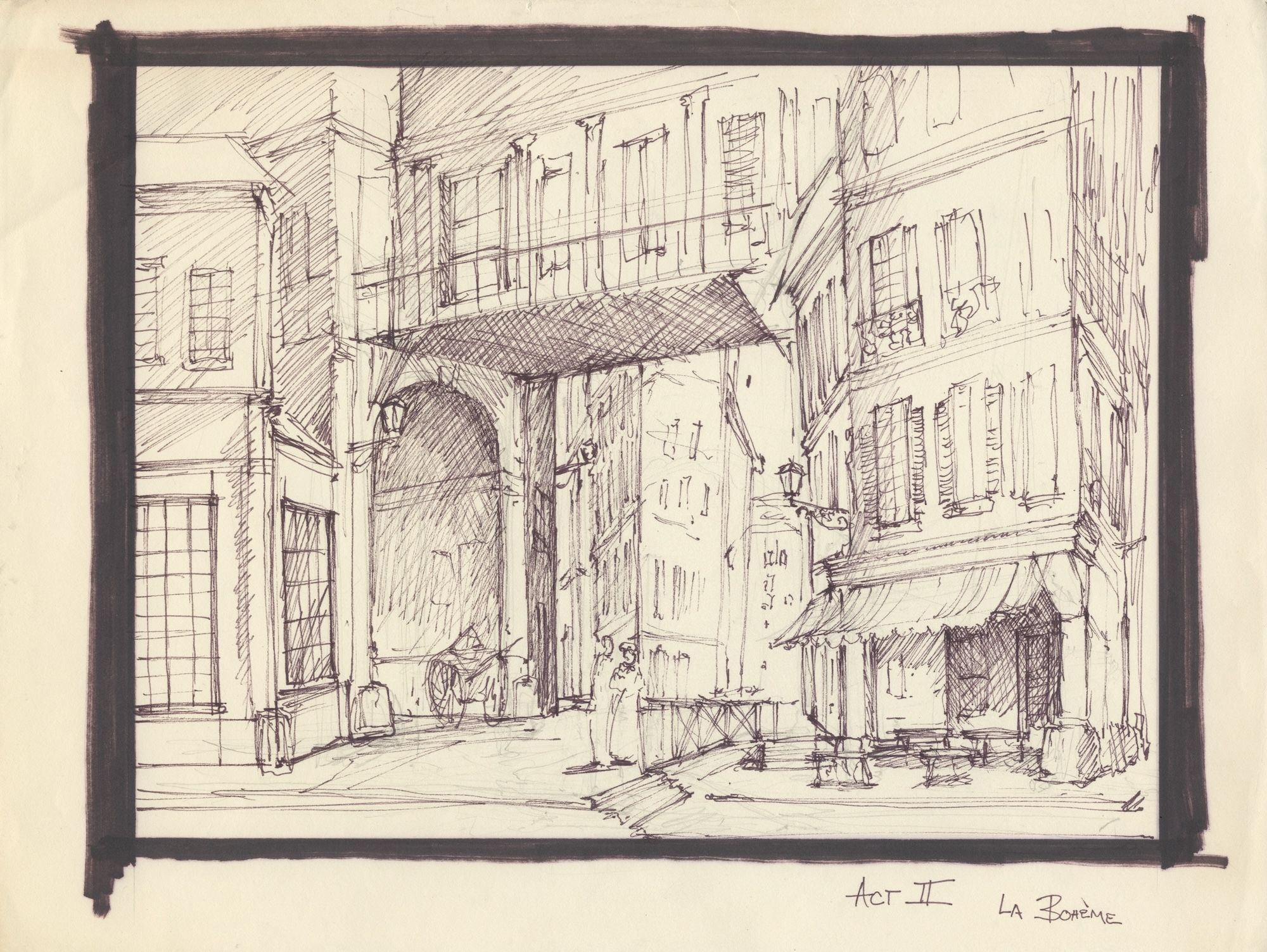 Slightly worn. Puccini's La Bohème is one of the most often performed operas in America. Perdziola was the scenic designer for the 1993 Santa Fe Opera production of the work.