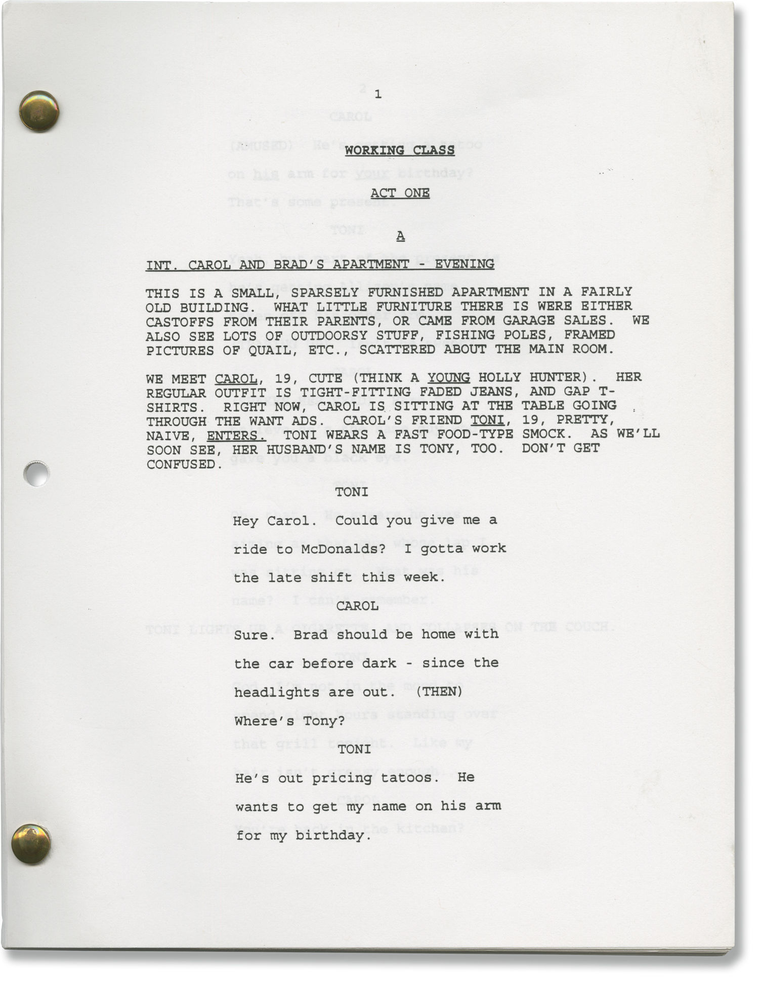 N.p.: N.p., 1997. Draft script for an unproduced television pilot. Bound in after the script are nine extra pages of dialogue, as well as a brief synopsis of the show's central themes.