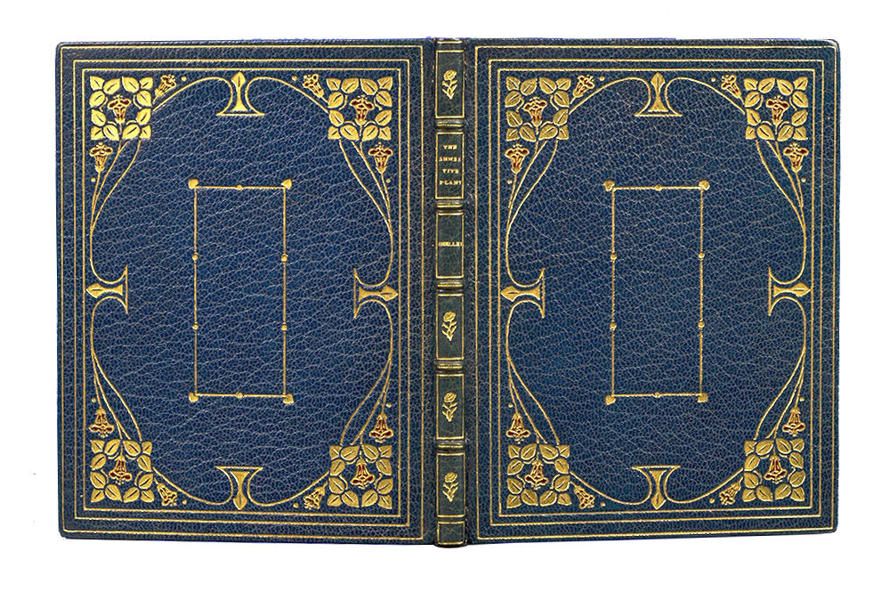 London: Robt. Riviere & Son, 1910. A fine example. Square sixteenmo (5 1/16 x 3 15/16 inches; 129 x 100 mm.). 46, [2, blank] pp. Title-page and initial letters printed in red and black. Handsomely bound ca. 1910 by Rivière & Son, stamp-signed in gilt on lower turn-in. Full dark blue crushed levant morocco, covers bordered in gilt surrounding an ornate floral design stamped in gilt, each with twelve inlaid red morocco flowers, spine with five raised bands decoratively tooled and lettered in gilt in compartments, gilt board edges and turn-ins, cream paper liners and end-leaves, top edge gilt. Neat ink inscription on front free end-paper and a small gold bookplate.