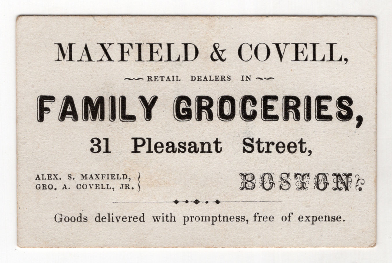 - Boston, Massachusetts: Maxwell & Covell, grocers, 1880