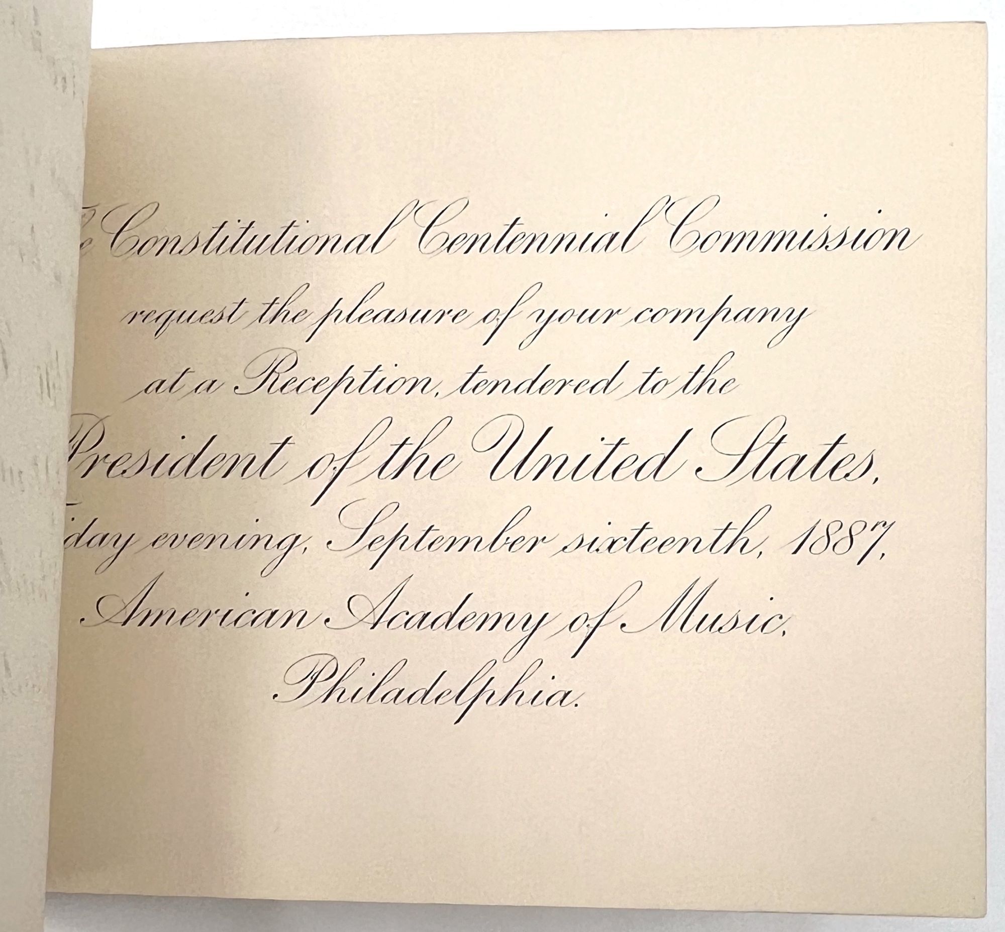 Invitation from the Constitutional Centennial Commission to attend a reception for the President of the United States, Grover Cleveland