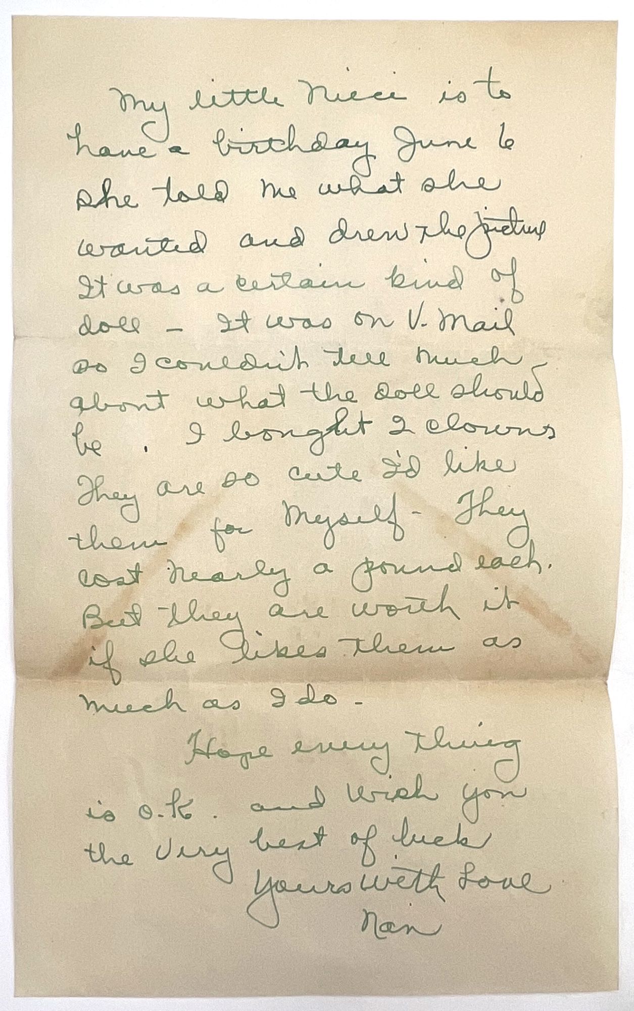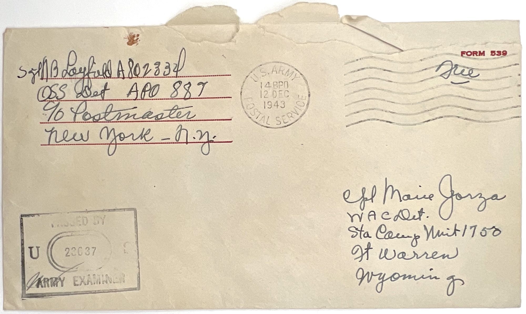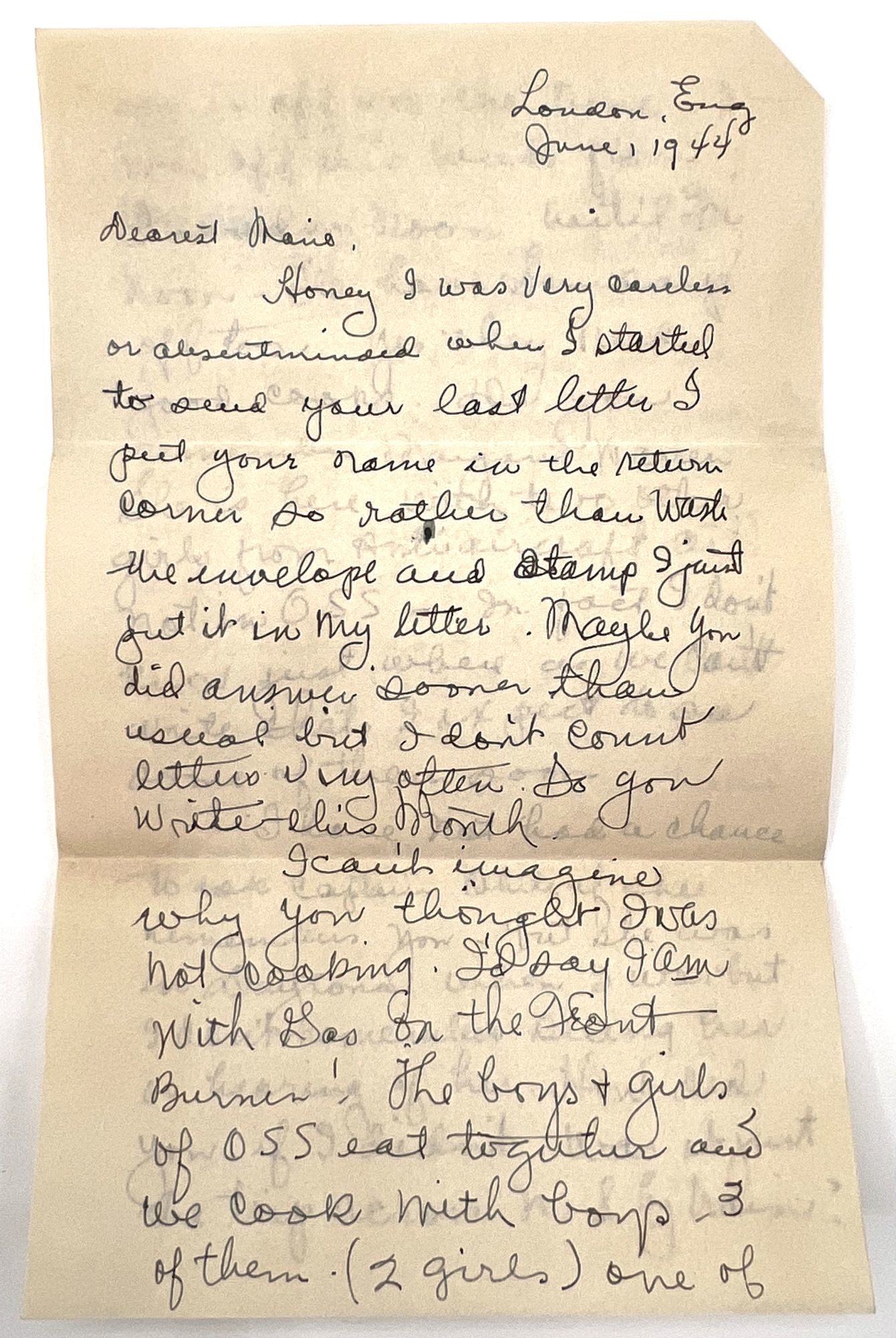 Three (3) Letters from Sgt. Nan Layfield of the OSS in London to WAC Cpl. Marie Jorza(?)