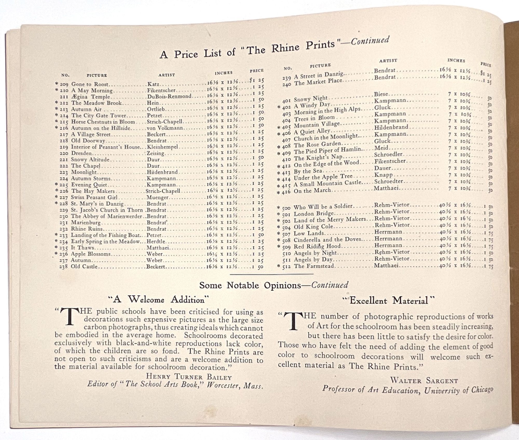 The Rhine Prints" -- Illustrated Catalogue of Color Prints for Homes and Schools