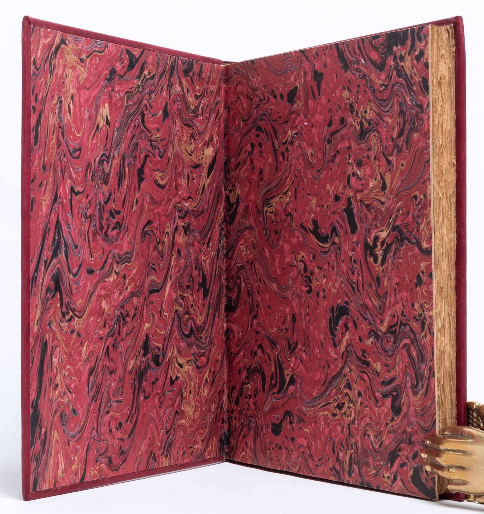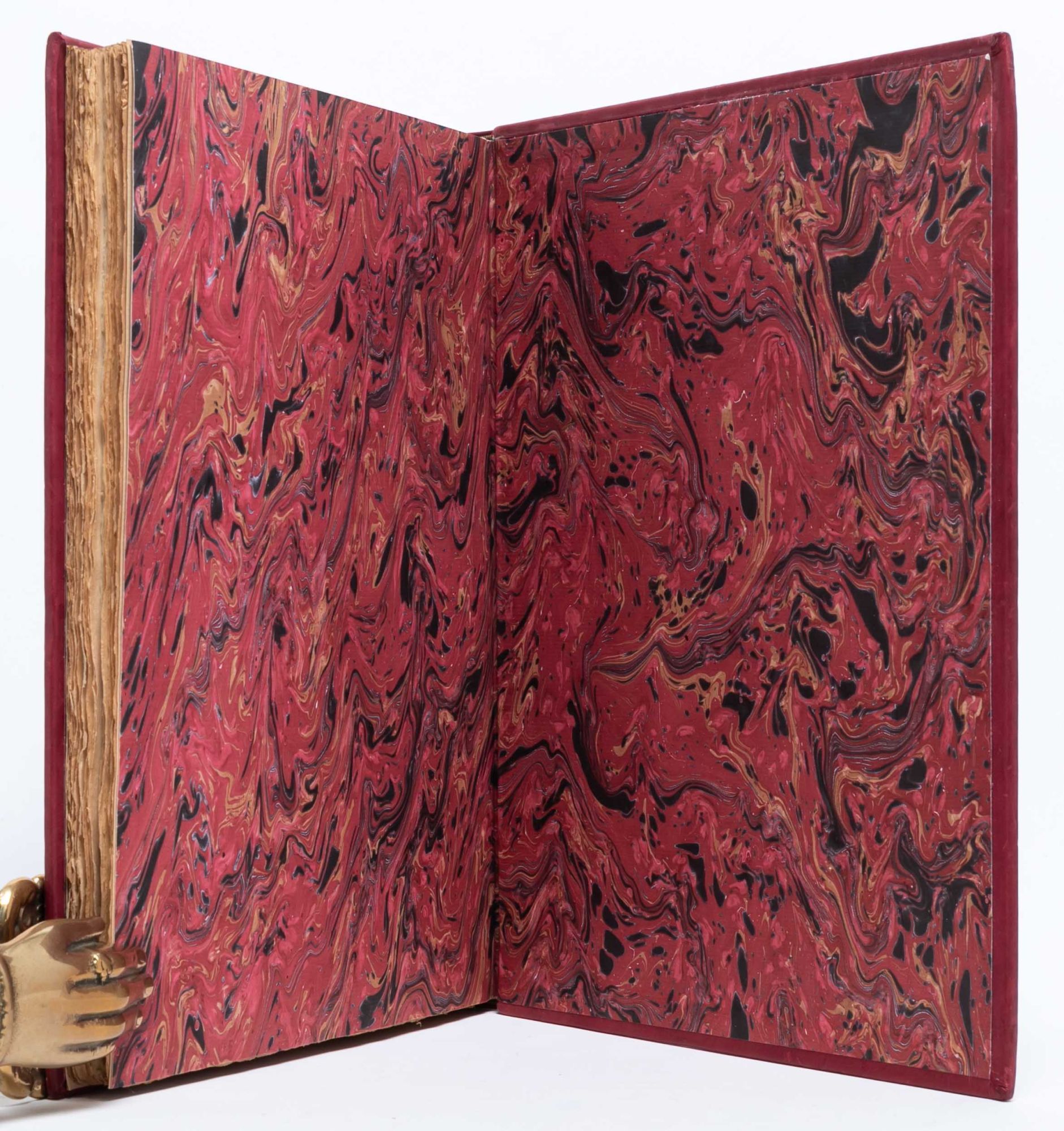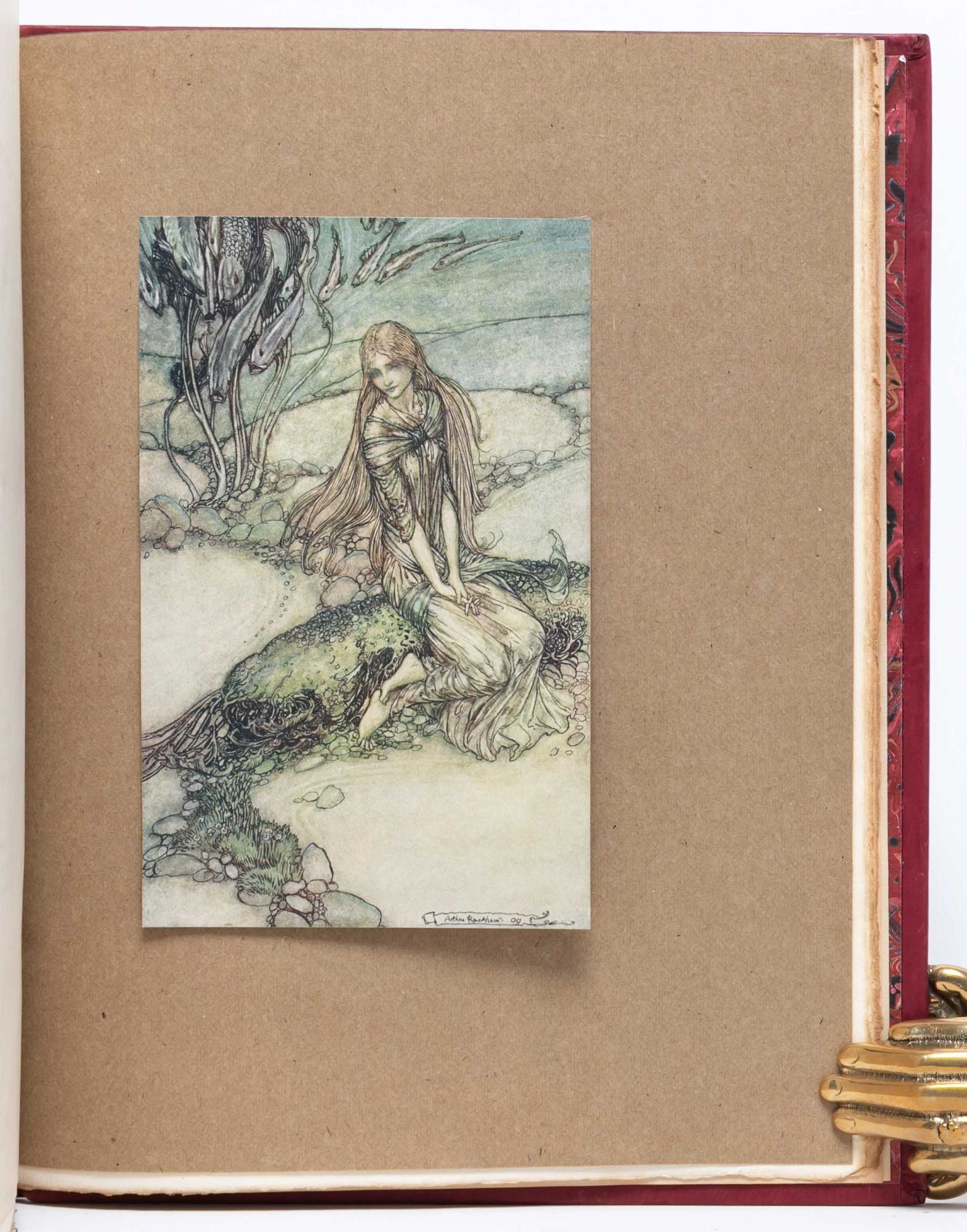 London & New York: William Heinemann/Doubleday, 1909. Deluxe edition. Near Fine. Number 893 of 1000 copies, signed and numbered by Rackham. With 15 color plates on heavy brown paper, and black and white illustrations throughout, retaining half-title. Rebound in red calf with decorated spine compartments and gilt title on blue leather, red marbled endpapers. Top-edge of text block gilt with rest of edges uncut. Some scratches to front and back boards, offsetting to half-title and last text page (136), and all pages facing the brown paper plates, otherwise interior bright and clean.