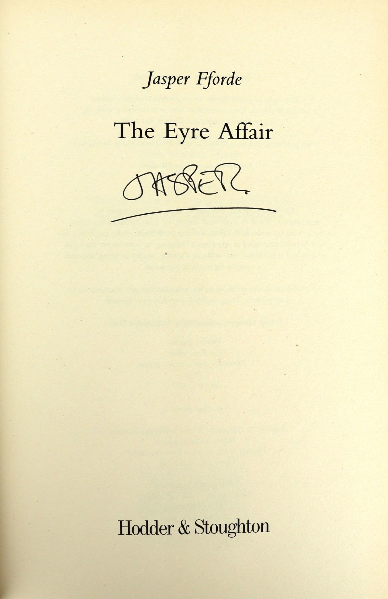 Fforde's first novel. Signed by Jasper Fforde on the title page. Insert for faux "Version 1.4" loosely laid in and joke ads in the back. The first novel in the Thursday Next series of mysteries set in an alternate history where books are the primary, and most important, media.
