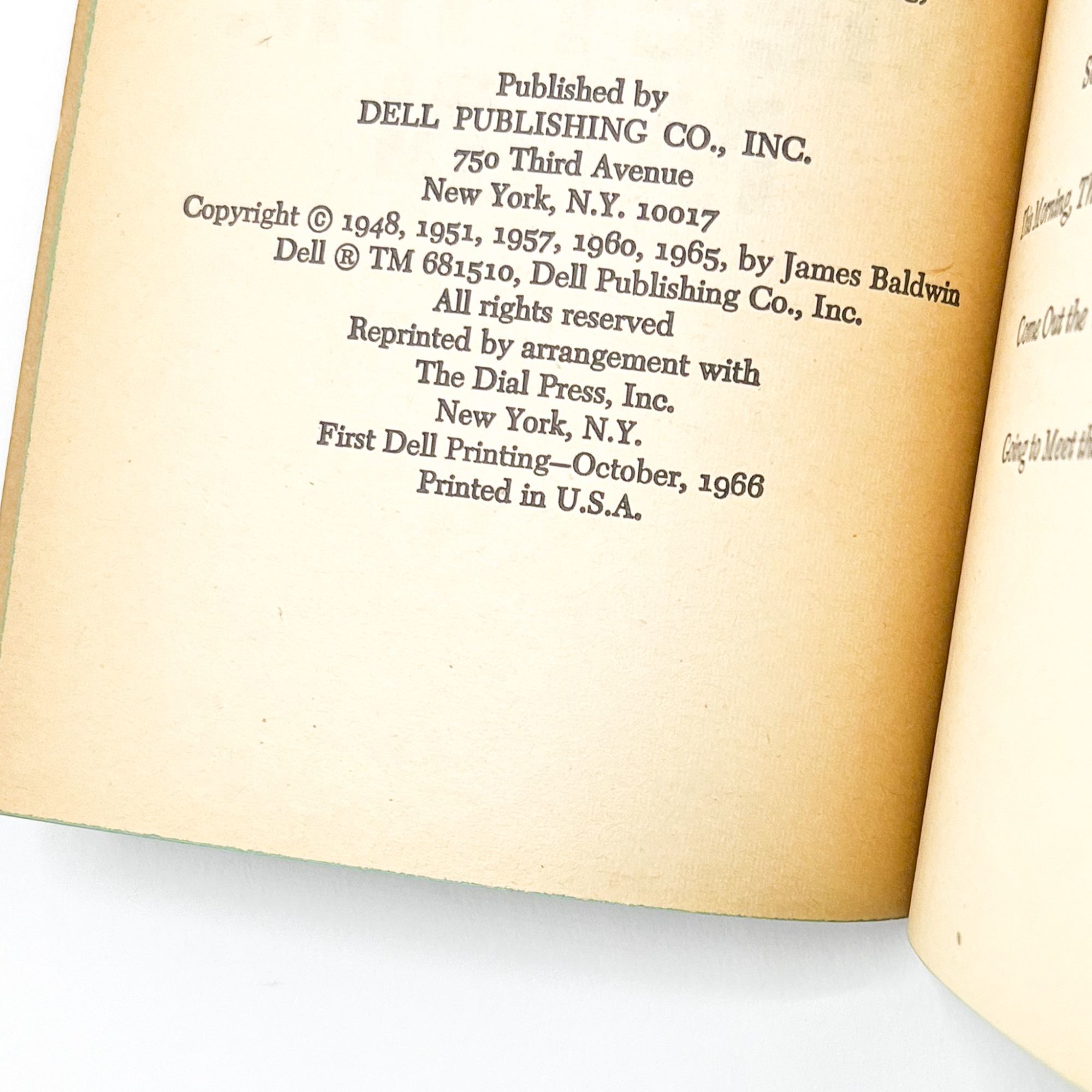 The collection was the first of Baldwin's books to be edited by E.L. Doctorow, replacing Christopher Lehmann-Haupt at Dial Press; Doctorow later recalled Baldwin's graciousness towards his then-young and wary editor and his ability "not to make you question but to make you see." 7'' x 4.25''. Original color pictorial wrappers with illustration by Oscar Liebman, Dell 2931, cover price 75c. All edges stained green. Publisher's ads at rear. 220, [4] pages. Light edgewear. Leaves with gentle toning to margins, short closed tear to first leaf.