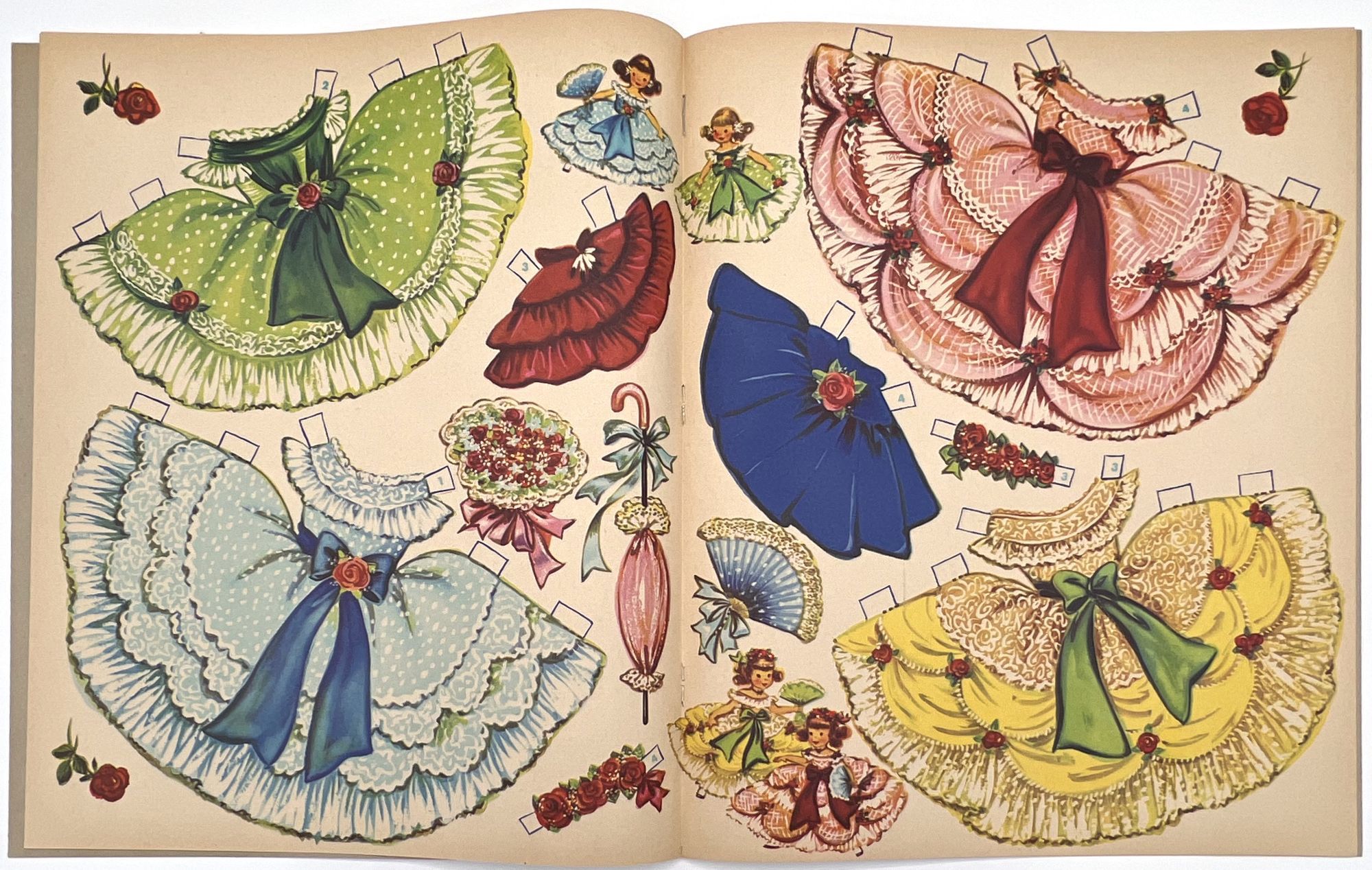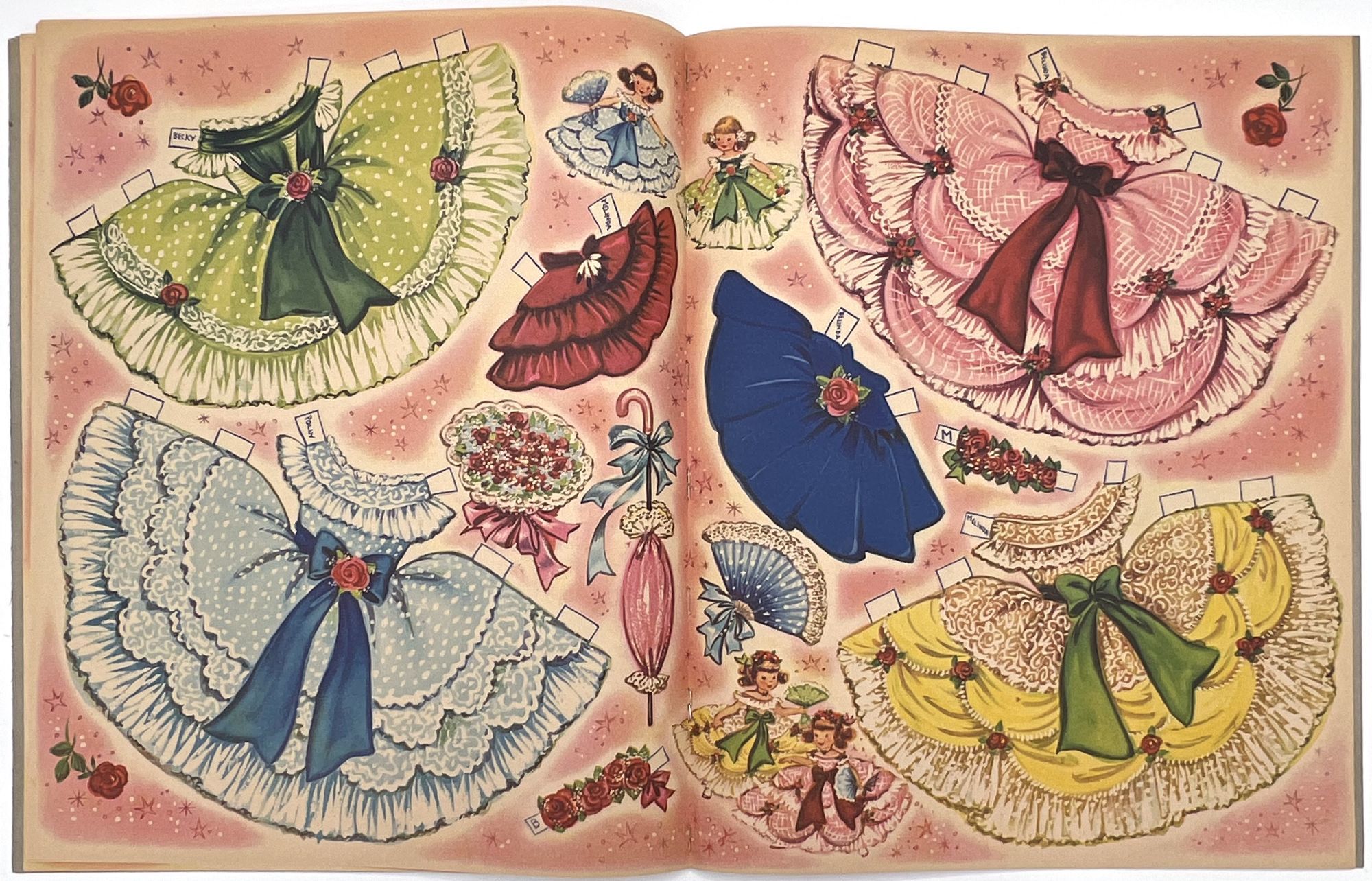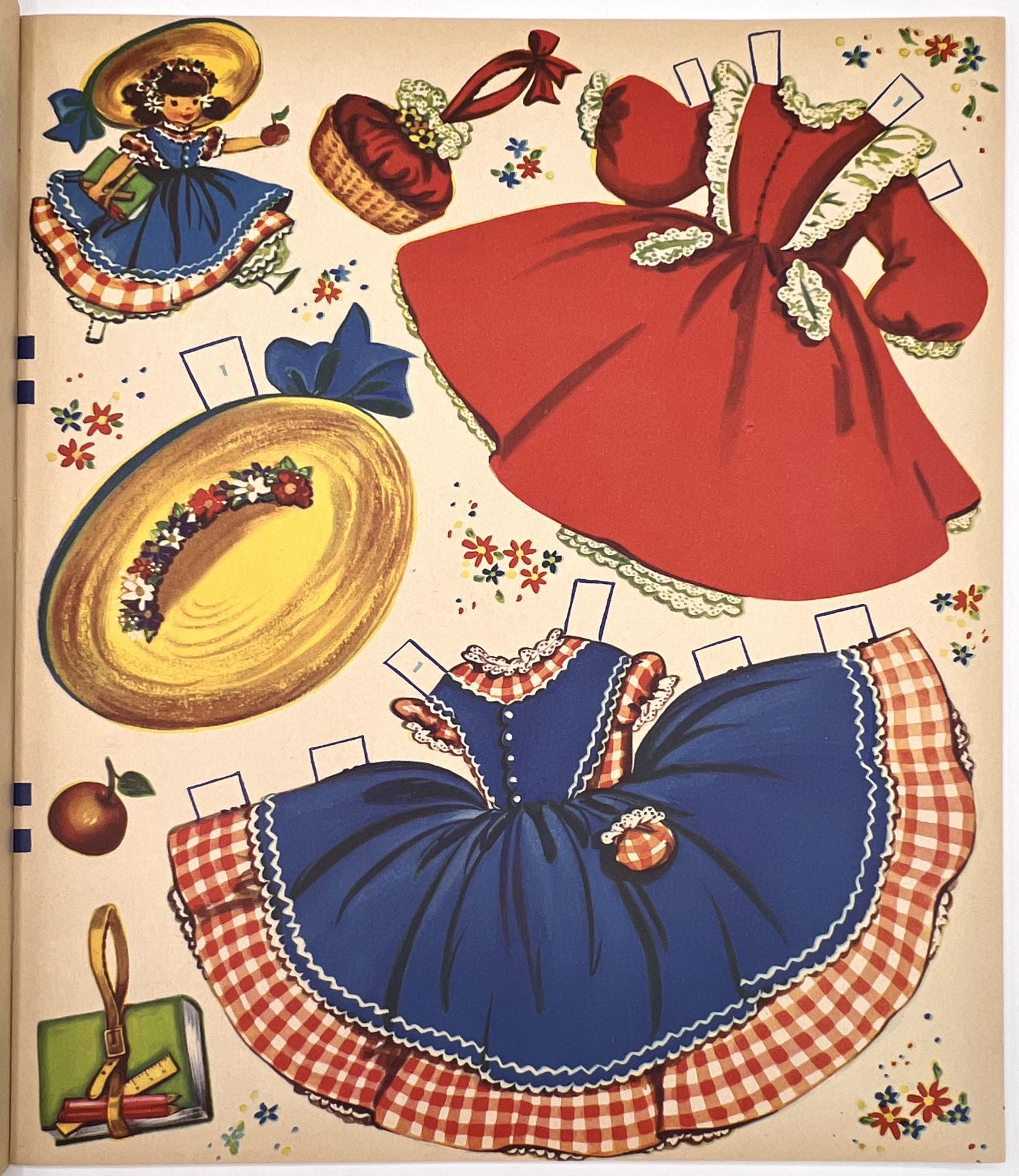 Chicago, Illinois: Merrill Company, 1951. Very good. Toned, modern tape repair.. Two (2) different issues of the same paper doll book, with notable differences, showing the publisher's changes from one issue to another, in response to changes in the market. Each paper doll book is uncut, and the publisher has used the same artwork; however, large changes have occurred between the issues, including typography, title, coloring, and the order of outfit pages within. One of the books has two more leaves than the other. The two books include:
