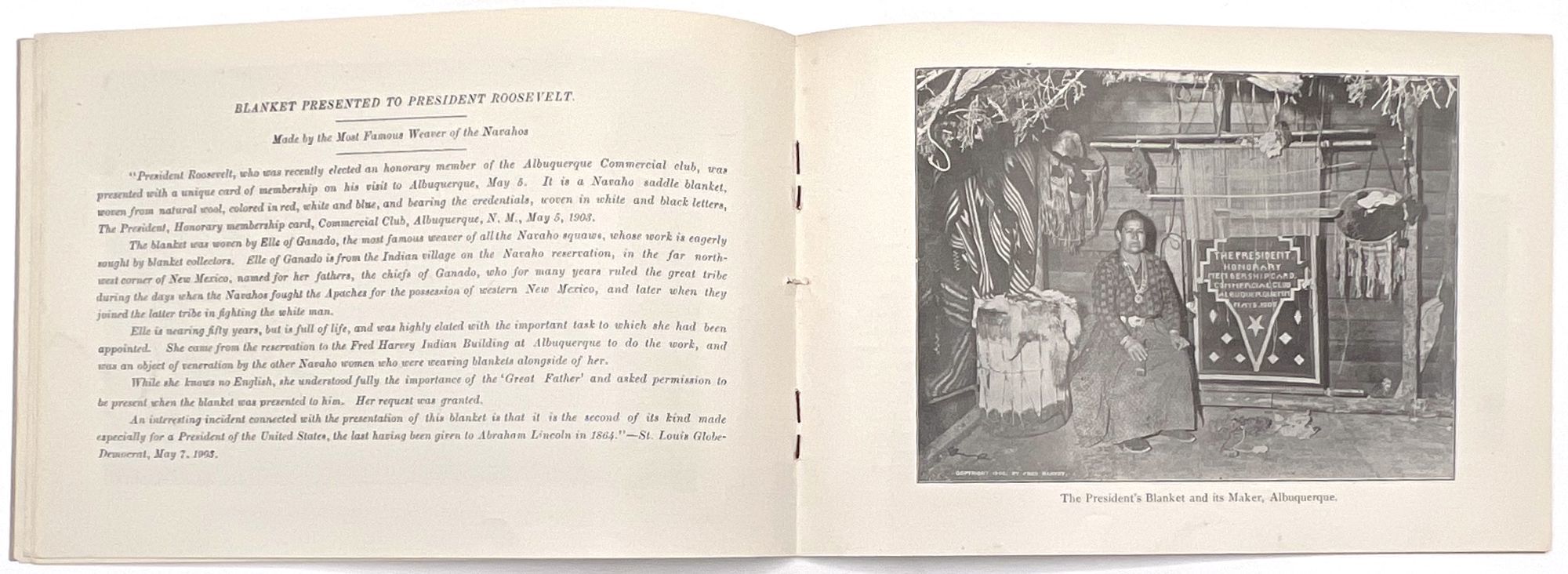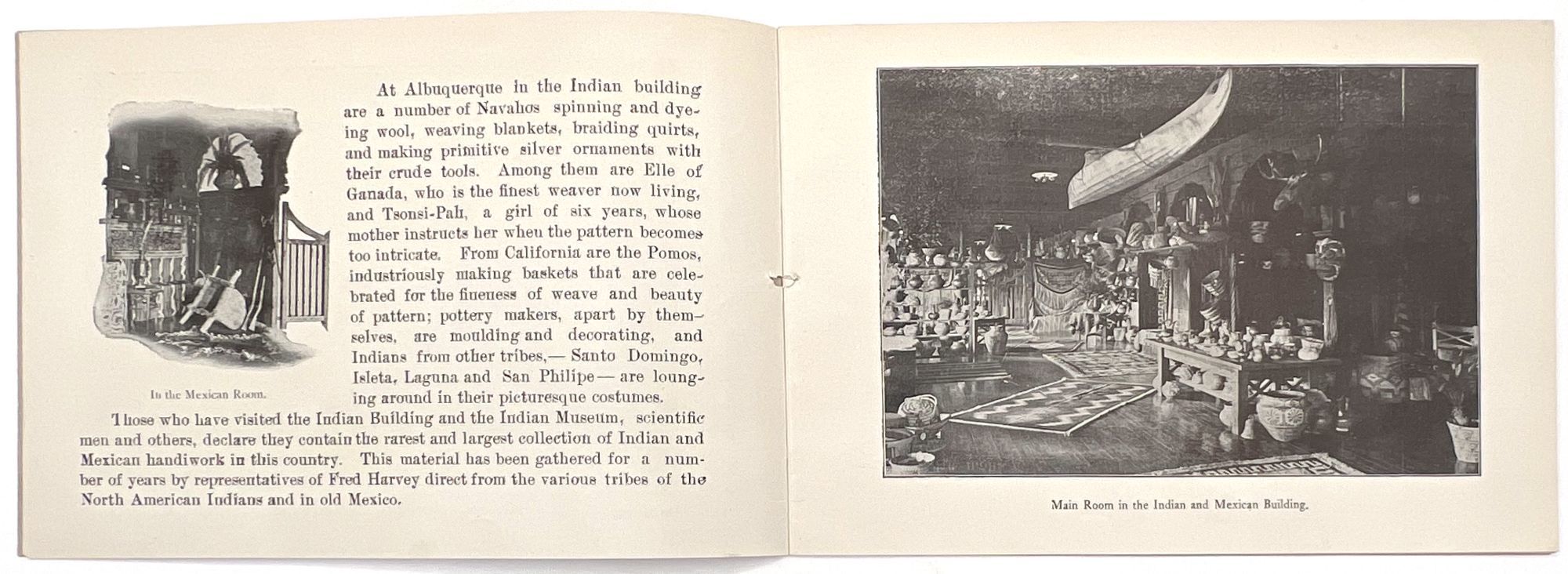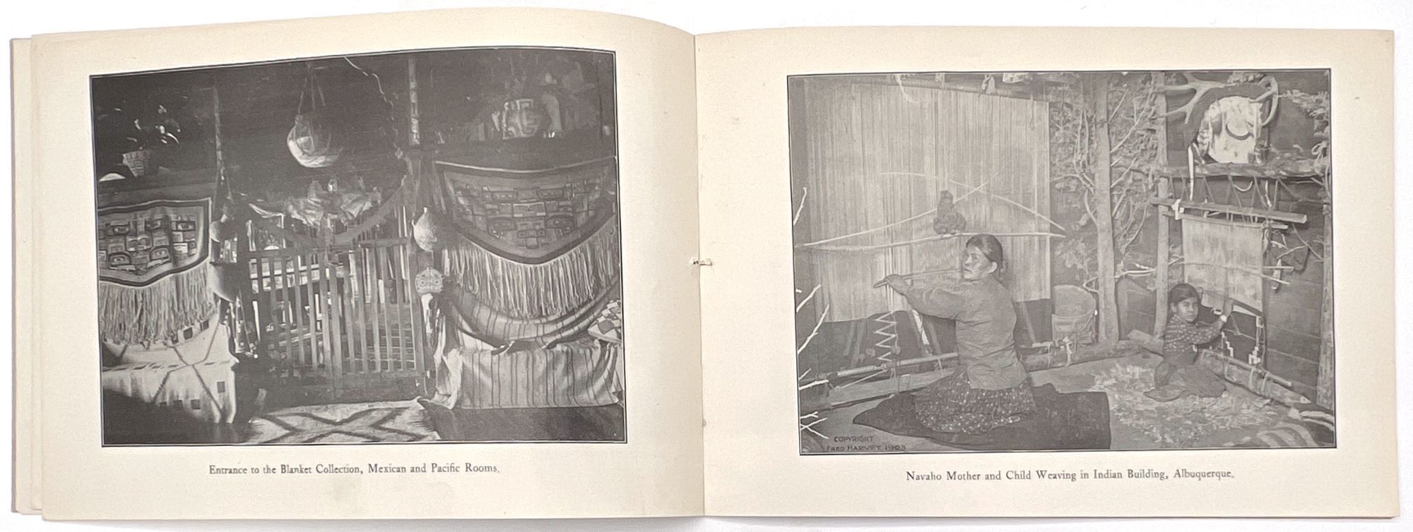 Albuquerque, New Mexico: Fred Harvey, n.d.. Very good.. An unnumbered 16 page book that includes images from photographs of Natives in and about the museum in exhibits and places of work. Comprehensive narrative on the museum. Points of interest include Blanket Collection, The President's Blanket and its Maker, interiors of Native homes and a curio. Measures 5.25" by 7.75