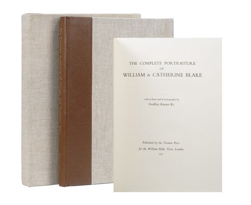 A singular collection of all portraits and related sketches of Blake, his wife, and places they lived, by a range of artists to get at the character of the artist. "This compilation of portraits was a departure for the Trianon Press, which had previously focused on facsimiles of Blake’s illuminated books and designs. But with a text by Blake scholar Geoffrey Keynes, who contributed commentary to the other facsimiles, it continued Trianon’s incomparable record of bringing all aspects of Blake’s work and life to light" (Union College). Fine.