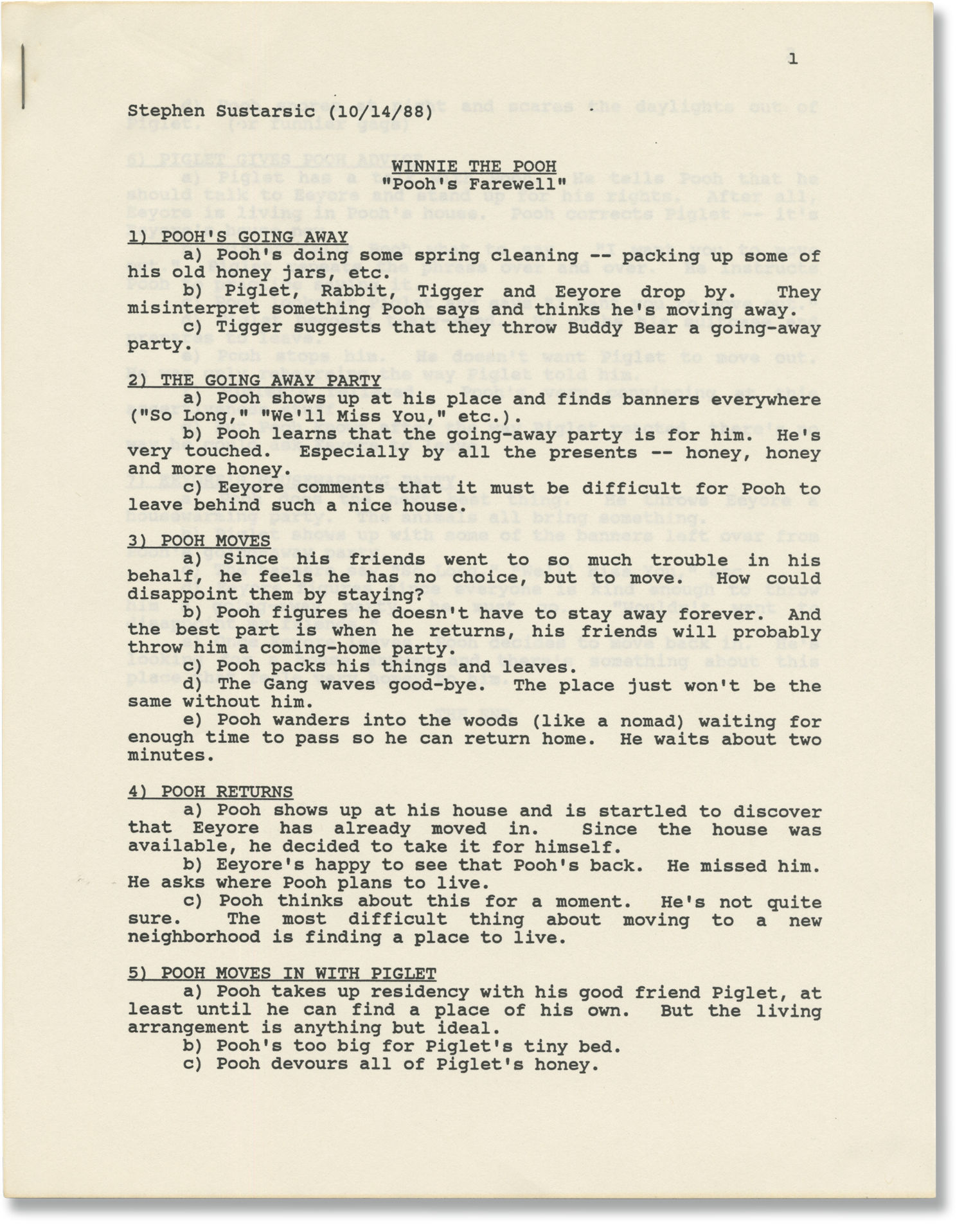 The New Adventures of Winnie the Pooh: Good-Bye Mr. Pooh (Three original screenplays and two Treatment scripts for the 1989 television episode)