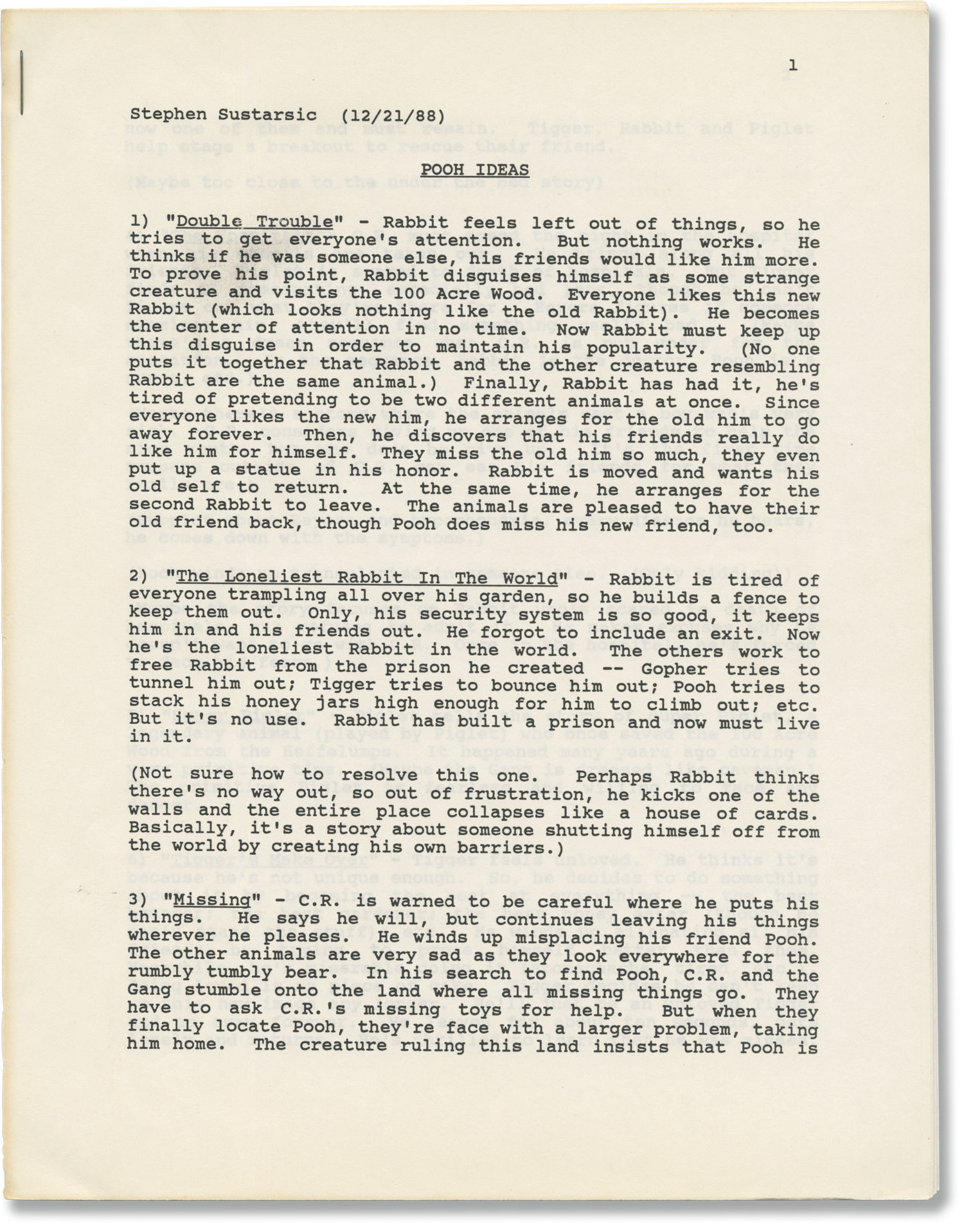 The New Adventures of Winnie the Pooh: Pooh Ideas (Original treatment script for the 1989 television season)