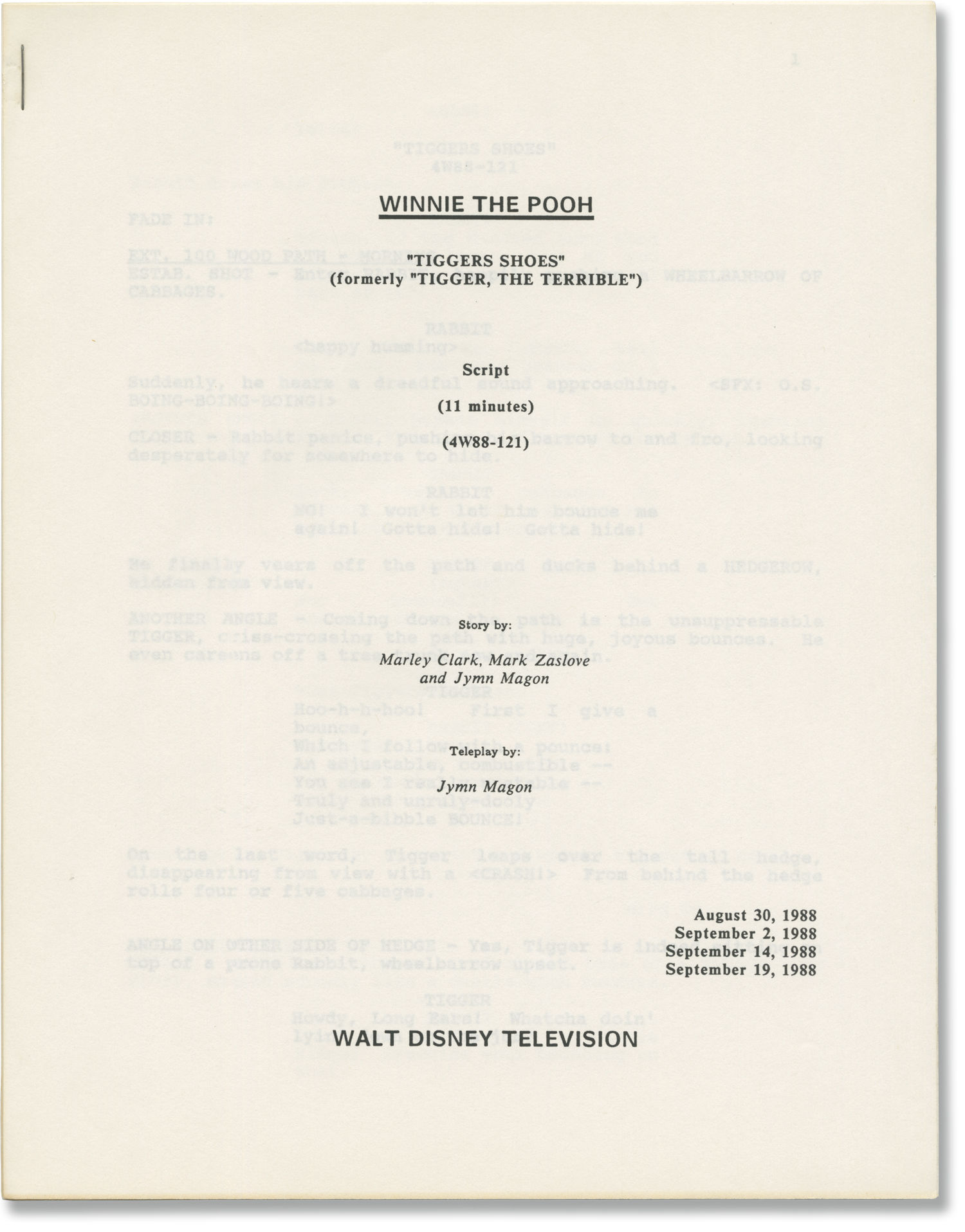 The New Adventures of Winnie the Pooh: Tigger's Shoes (Original screenplay for the 1989 television episode)