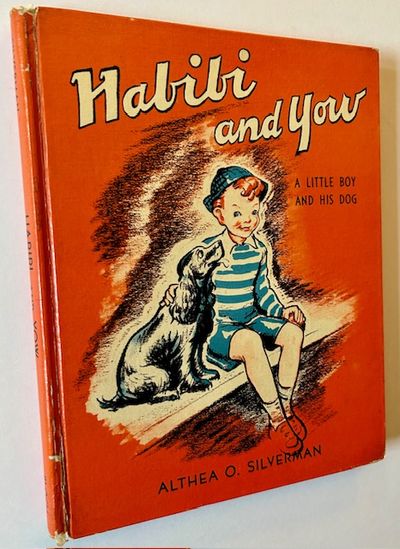 New York: The Bloch Publishing Company, 1948. Pictorial boards. Very Good +. Jessie B. Robinson. A clean, sharp copy of the uncommon 1948 2nd edition of this "Jewish" children's book, published by Bloch Publishing Company, "The Jewish Book Concern". About a little boy (Habibi) and his dog (Yow). Solid and VG to VG+ in its orange pictorial boards, with very light wear along the spine ends and the tips. Several charming children's pencil sketches along the rear blank endpapers. Quarto, nicely illustrated throughout by Althea O. Silverman, who contributed wonderful color endpapers as well.