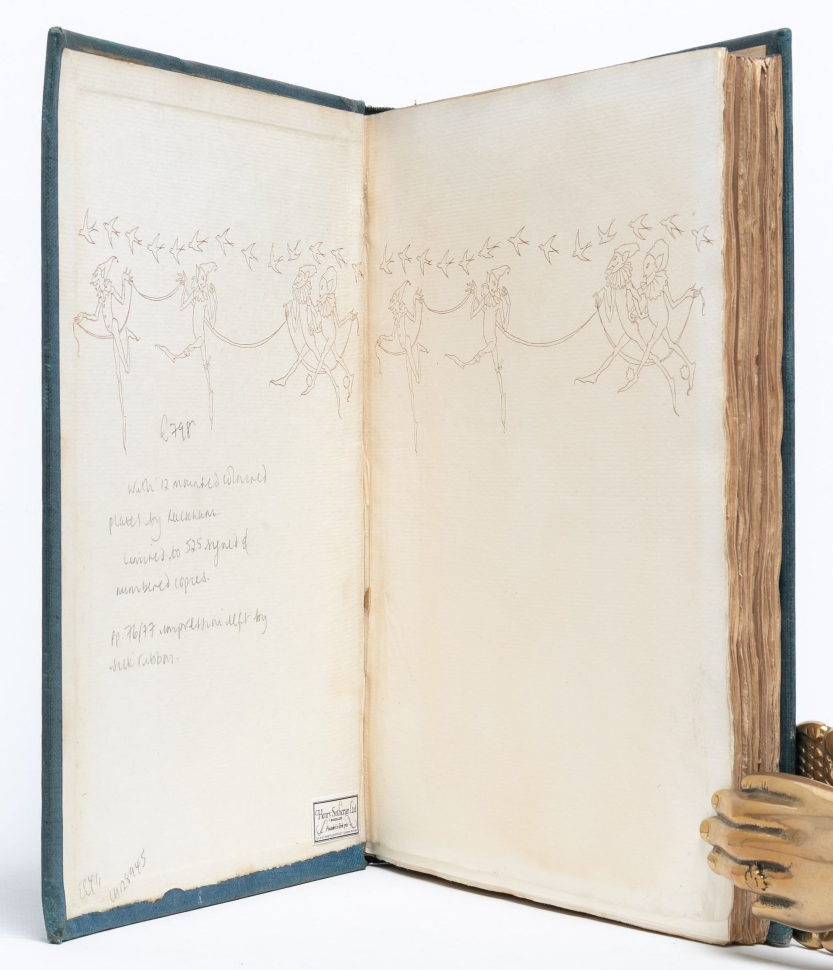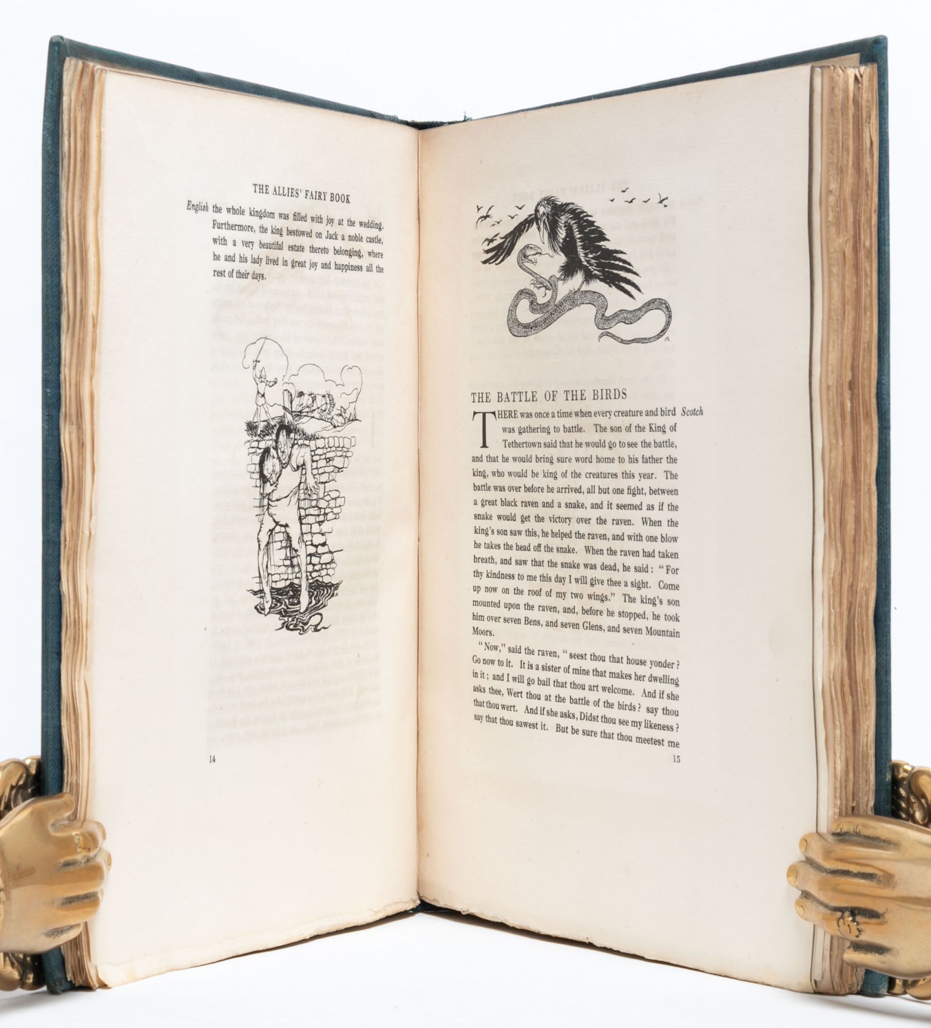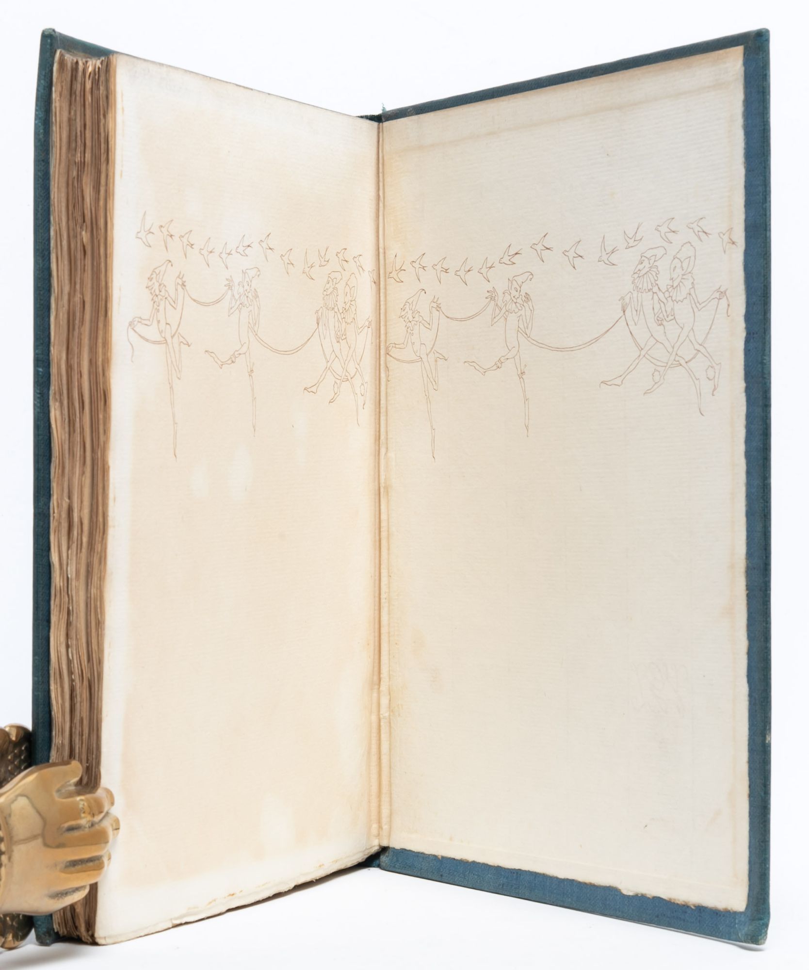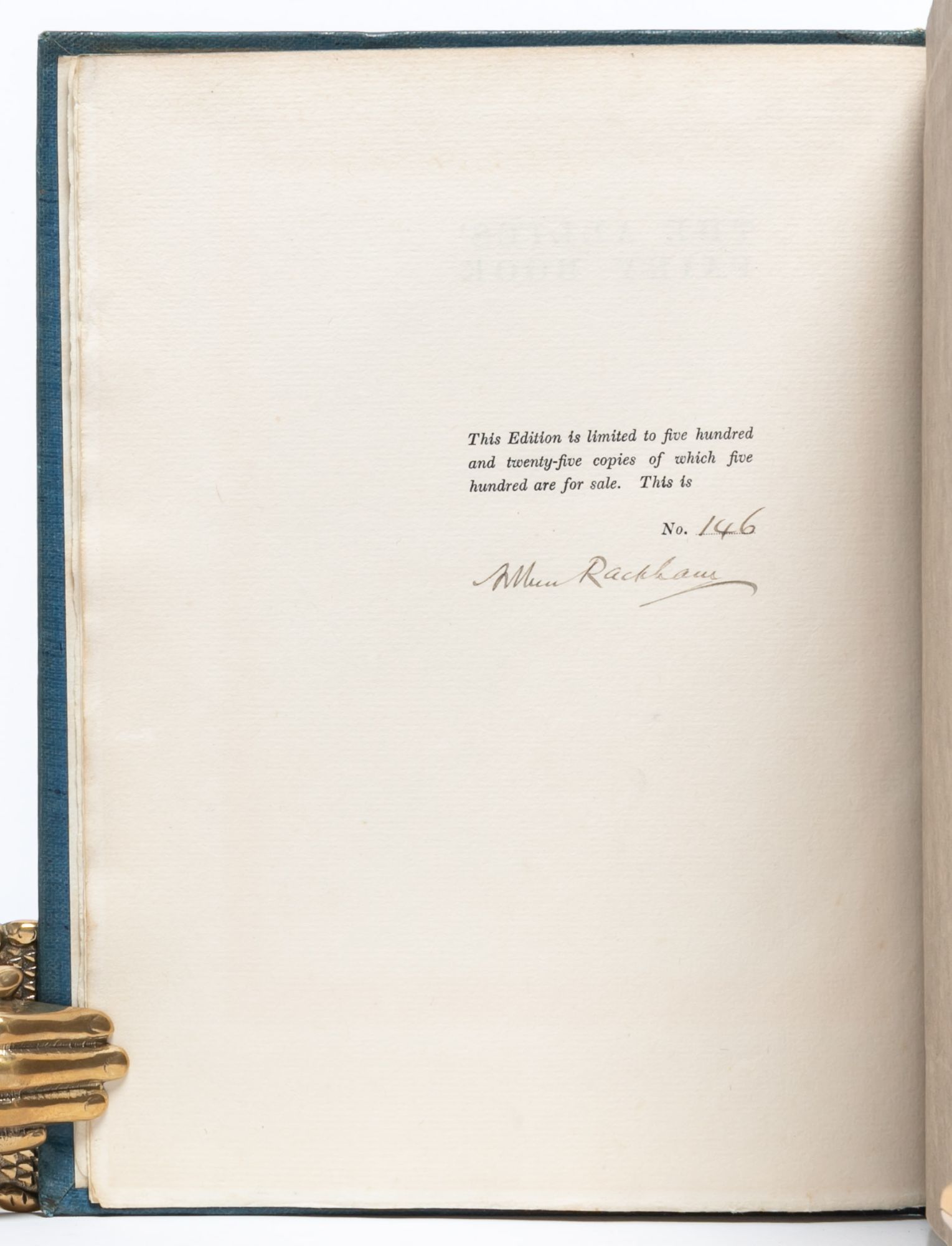 London: William Heinemann, 1916. First edition. Near Fine. Edition deluxe, number 146 of 525 numbered copies signed by the artist. Quarto (9 11/16 x 7 3/8 inches; 246 x 187 mm.). xxii, 121, [1], [4, blank] pp. Twelve color plates mounted on heavy brown paper, with descriptive tissue guards printed in red, and twenty-four drawings in black and white. Publisher's blue buckram, front cover and spine pictorially stamped and lettered in gilt, decorative end-papers, top edge gilt, others uncut. A Near Fine copy with the spine a trifle toned, previous bookseller's ticket on the front paste-down and some pencil notations. Slight offsetting from the silk marker to pages 76-77.