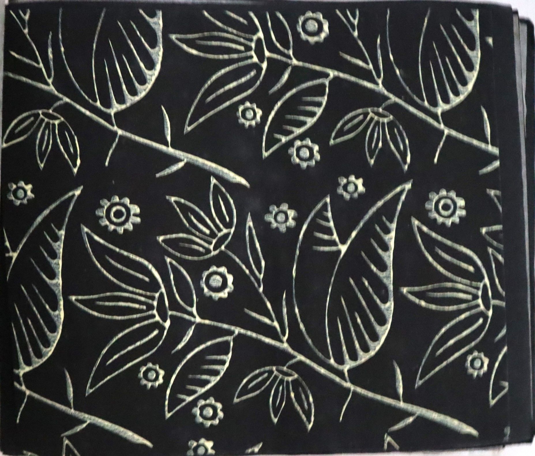 1930. NA. Very Good. 53 wallpaper samples representing eleven, or arguably a dozen, different patterns, all striking, and all Modernist, and Art Deco-ish, in their sensibility. Patterns are geometric -- lines, circles, parallelograms, etc. -- or abstracted foliage and other floral elements, or vaguely suggestive of marine life. While there is no date, nor even evidence of the wallpaper company for whom these were done, we are of the conviction these date probably to the 1930s, although they could be from the twenties, or the forties. The paints on the wallpapers have an actual palpability that comes from hand-brushwork. We assume that a stencil process was used to create these samples. Within the designs, there can be differences from one to the next besides their coloring. In a leaf pattern design, for example, some of the samples have a superimposed pattern of short lines, while others have none of this --thus our question mark about the number of different designs. Each pattern is shown in multiple color combinations, per typical for wallpaper sample books. The samples are mounted on black paper, these undersheets measuring 32.5 by 26 cm, and the samples are mounted with modest margins and are close to uniform in size, but not completely so. Typical would be dimensions of about 28 by 24 cm. Over each of the samples is a spider web patterned thin and translucent vellum tissue guard, such as we associate with photo albums from the early to mid-20th century. It is our educated guess that these samples were part of the drafting process, and not meant to be presented to customers. In other words, pre-catalogue. But since we don't know the manufacturer, we can't know for sure. Since by this time the design market was international, we also can't be sure of the nationality of that company -- it could be French,German, English or American.