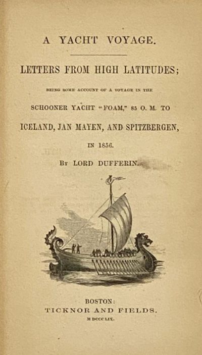Boston: Ticknor and Fields, 1859. Hard Cover. Good. Loss to spine head and to spine base, board corners and edges rubbed, front free endpaper missing. 1859 Hard Cover. 406, 16 pp. "Letters from High Latitudes" is a travelogue written by The Marquess of Dufferin, also known as Lord Dufferin, about his voyage on the schooner yacht "Foam" in 1856 to Iceland, Jan Meyen, and Spitzbergen. The book is written in the form of letters to his mother and sisters, providing vivid descriptions of the landscapes, people, and wildlife he encountered on his journey. Lord Dufferin's writing style is engaging, humorous, and at times, self-deprecating. The book is a fascinating account of an adventurous journey through some of the most remote and inhospitable regions of the world. It provides valuable insights into the culture and customs of the people living in these regions, as well as the challenges faced by explorers and adventurers of the time. Lord Dufferin's love for nature and his appreciation for the beauty of the natural world are evident throughout the book.