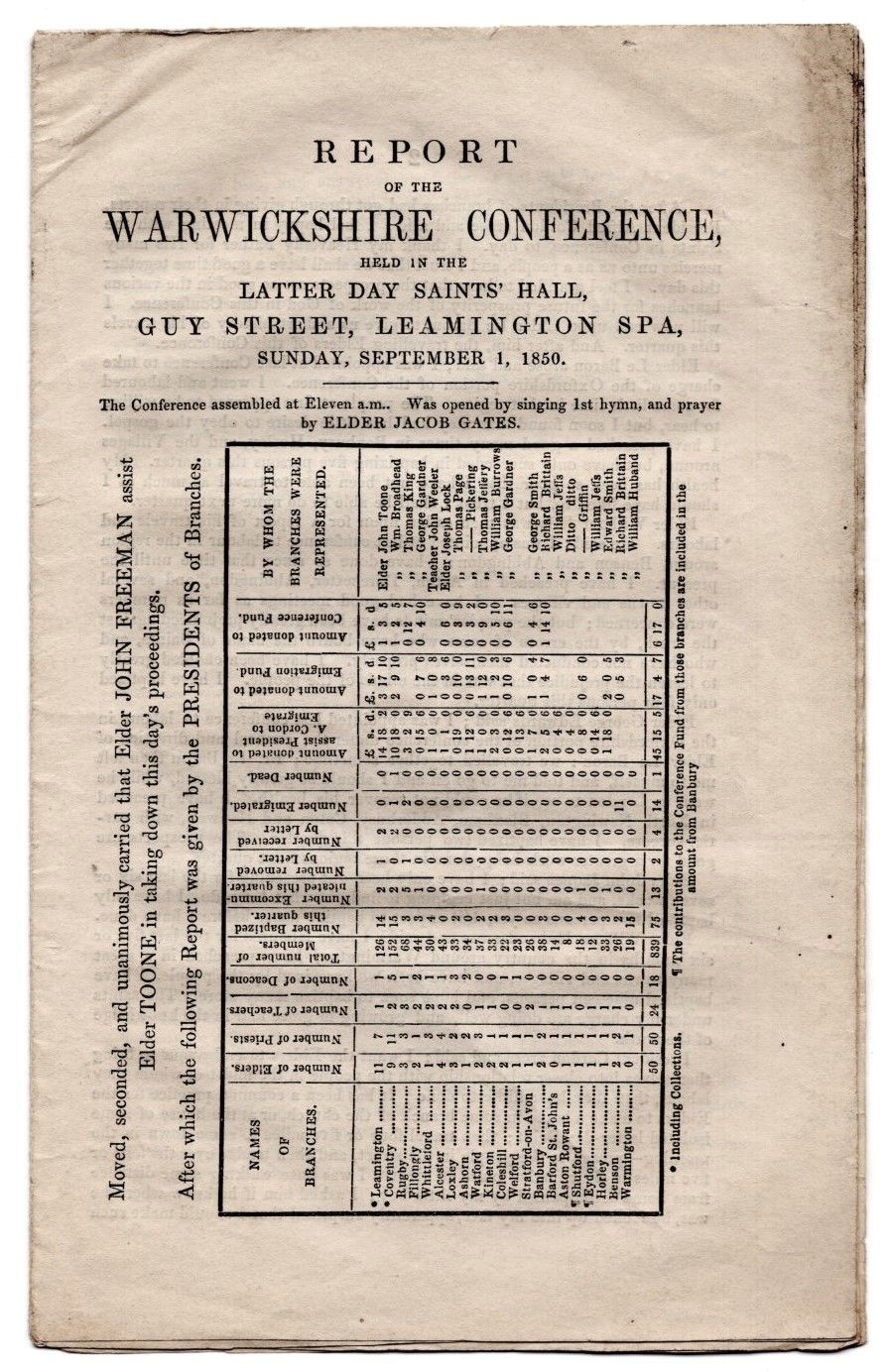 Report of the Warwickshire Conference, Held in the Latter-day Saints' Hall, Guy Street, Leamington Spa, Sunday, September 1, 1850