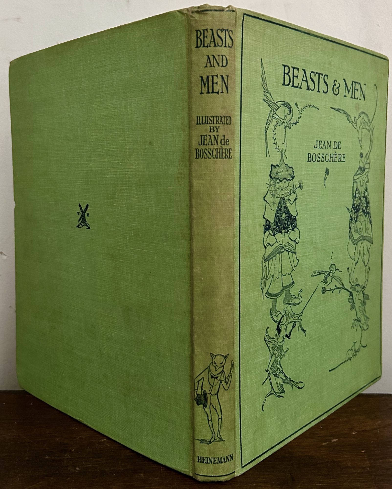 London: William Heinemann, 1918. First Edition. Hardcover. Orig. illustrated green cloth, spine also decorated. Near fine. Bosschere, Jean de. 179 pages. 27 x 21 cm. Twelve full page color plates with lettered tissue guards, plus 179 black and white illustrations: a few in two colors. Bright, very fresh copy, one can note it was never in the hands of a child. Decorated endpapers in color and remnants of original dust wrapper laid-in. Collection of folk tales and legends from Flemish and Brabantian sources. Book label of J&Beale Book Department Bournemouth. Spine slightly darkened.