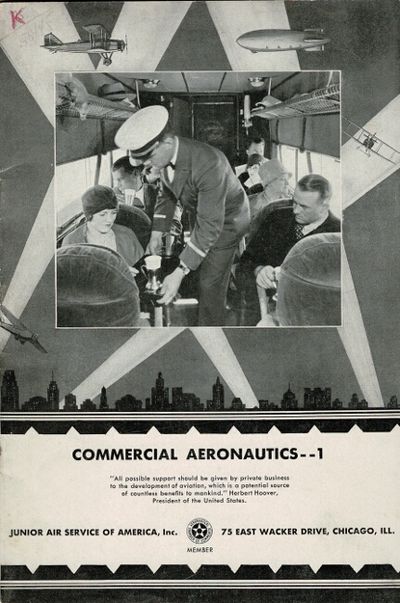 Chicago: Junior Air Service of America Inc, 1930. 8vo, pp. 58, [2]; text illustrations throughout; illustrated self-wrappers; small inscription in corner of upper wrapper, text clean and sound, near fine. A corporate product, with articles covering the history of aviation and important milestones,