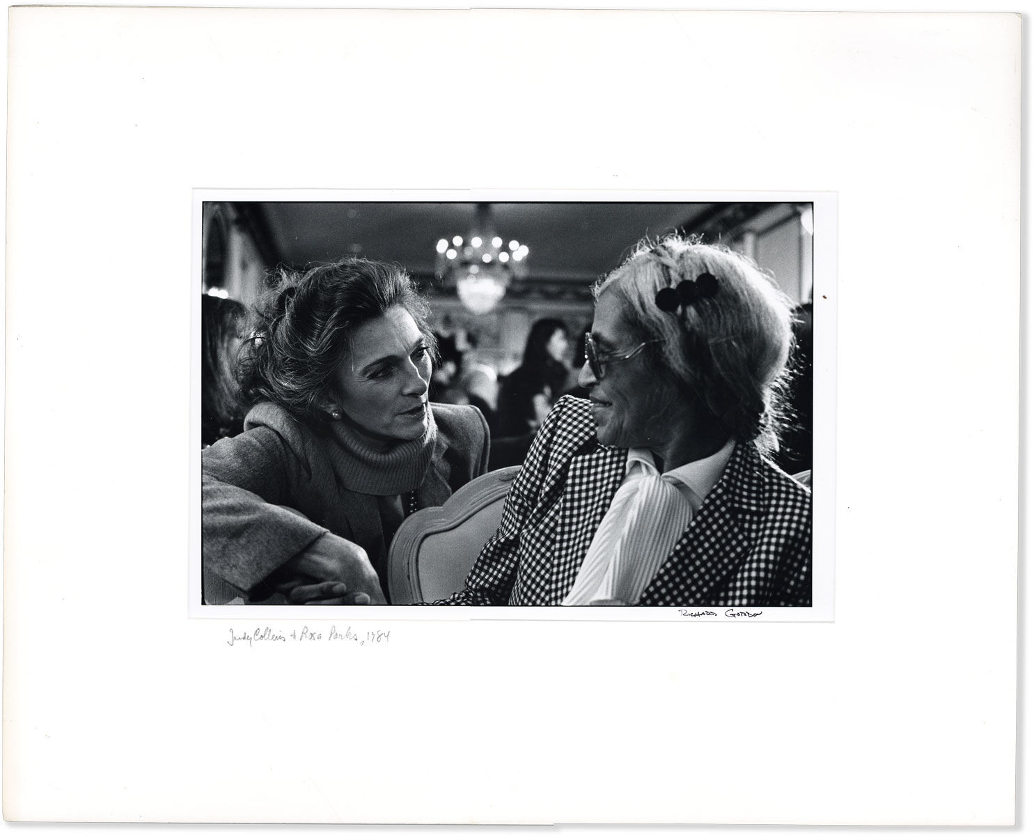 A lovely profile portrait of Parks in conversation with American folk singer and activist Judy Collins. Likely from the 1984 Candace Award ceremony, held at the Metropolitan Museum of Art. The Candace Award was a prize given to African-American women of distinction by The National Coalition of 100 Black Women over a ten-year period between 1982 and 1996; the 1984 prize was shared between five women, all pioneers in the American civil rights struggle of the 1950s-60s. Photographer Richard Gordon (1945-2012) became well-known for his studies of New York shop windows in the 1960s; he published half a dozen monographs and his works are widely held, including at SFMoMA, the Art Institute of Chicago, and the Corcoran among many others.