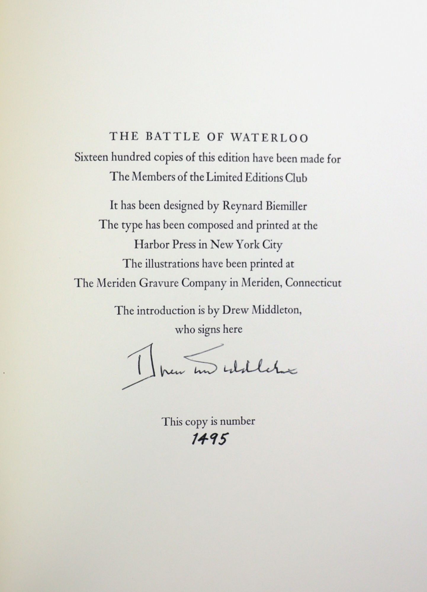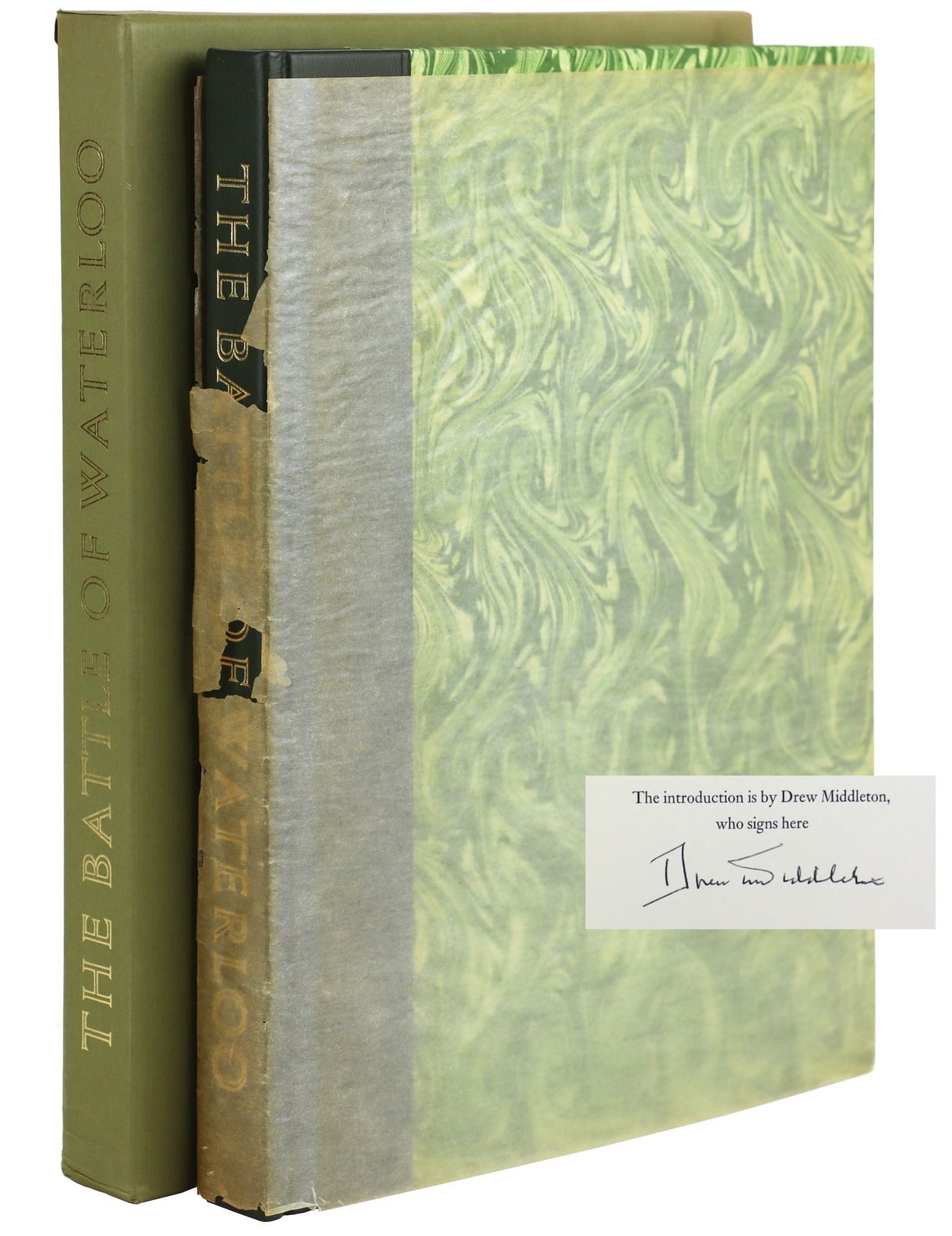 Jacket toned and missing portions of spine and minor wear to and sunning to slipcase, else a Near Fine example. Signed by Drew Middleton on colophon at rear. Monthly newsletter and prospectus laid in. Designed by Reynard Biemiller and printed at the Harbor Press, New York.
