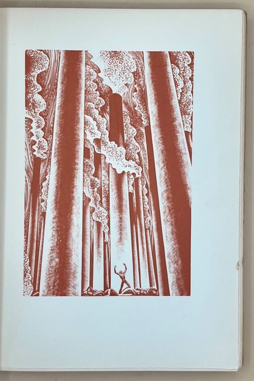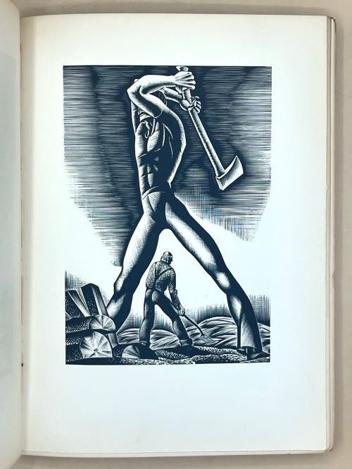 New York: Harrison Smith & Robert Haas, 1932. First edition. Hardcover. Very Good/Good +. Octavo [24 cm] Full rust colored cloth with paper labels on the front board and spine, and the publisher's black top stain. Spine rolled. Extremities lightly bumped and faintly soiled. In the uncommon dust jacket, which is a bit toned - particularly at spine - and has a handful of short, closed tears and small losses. Pencil notation on front flap of dust jacket. The author and illustrator's third wordless novel explores the social and economic realities of the Great Depression. Preceded by the artist's groundbreaking first two novels: Gods' Man (1929) and Madman's Drum (1930). In this work, Ward used a a two color system - rust colored for the thoughts of the protagonist, and black for the crumbling world around him. Ward produced six wordless novels between 1929 and 1937, and although Ward continued to be an illustrator in high demand for the rest of his life, these early works find him at the absolute height of his creative and artistic powers.