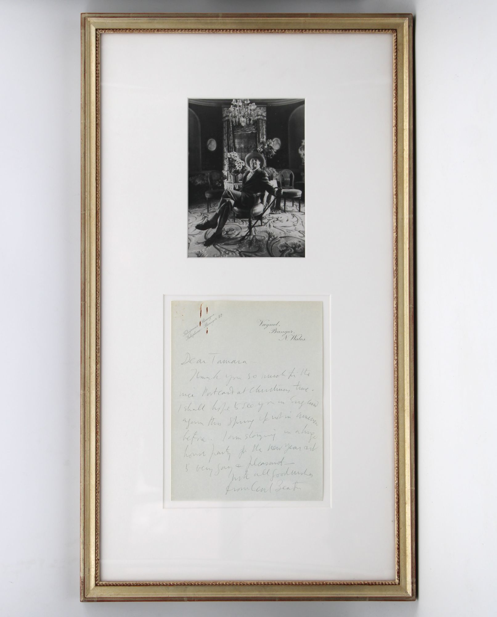 1950. 1 vols. One leaf, recto only, on personal stationery; rust stain from paper clip top left; framed with black-and-white portrait of Beaton. 1 vols. Vaynol — also spelled Faenol — was the Welsh estate of the unconventional Sir Michael and Lady Caroline Duff. Dating from the Tudor period, and surrounded by a seven-mile stone wall, the house was the site of frequent visits by such esteemed guests as the Queen Mother, Queen Elizabeth, Lord Snowdon (Sir Michael's godson), Princess Margaret, Prime Minster Harold Macmillan, and Cecil Beaton, who took many of the photographs in the family's private album.